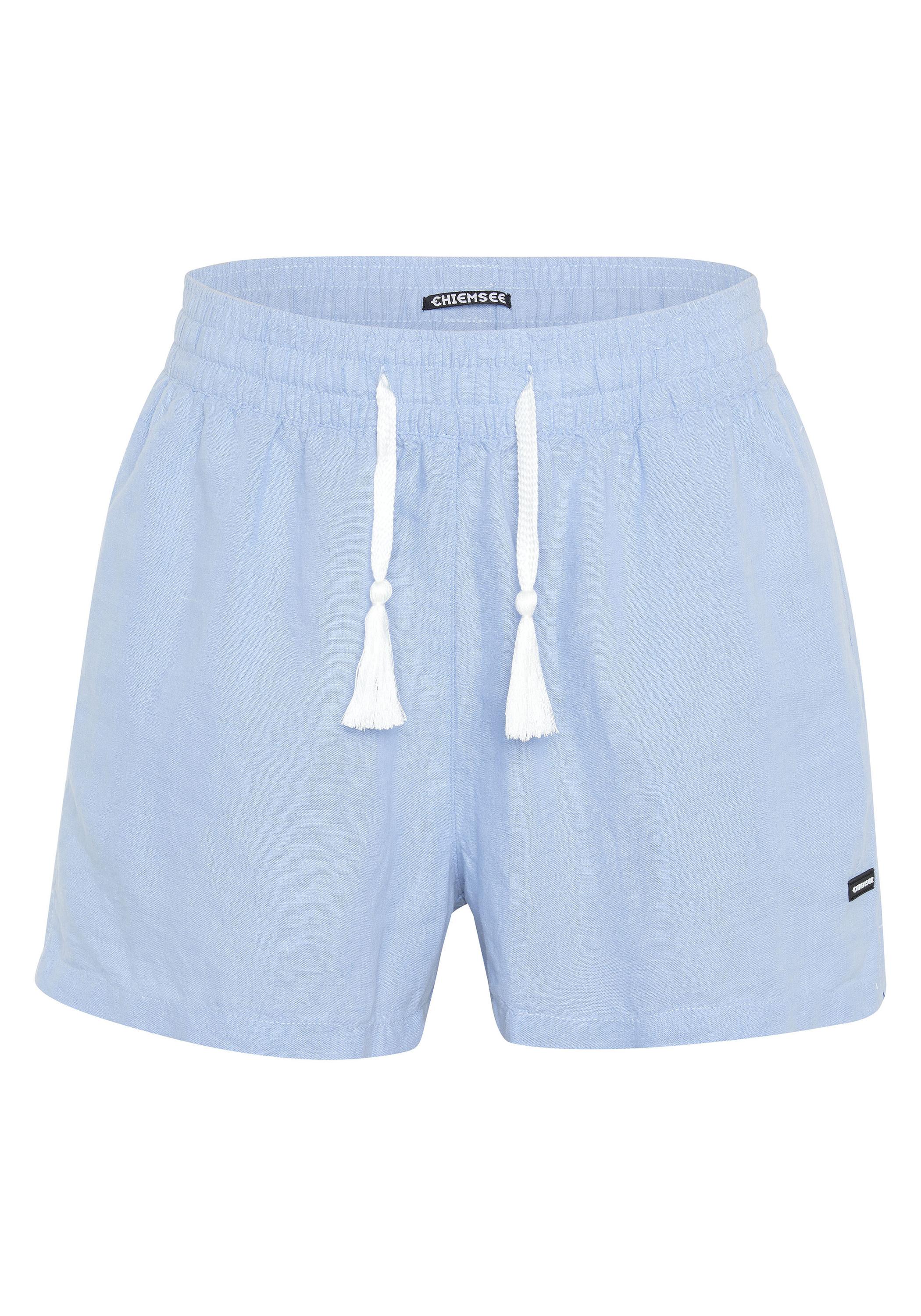 In den Damen-Shorts von CHIEMSEE kannst du dir eines sommerlich-leichten Tragegefühls sicher sein. Dafür sorgen das pure Leinen und die lockere Beach-Silhouette. Moderne Akzente fügen der dezent geraffte Bund und das Tunnelzugband mit Troddeln hinzu. Kombiniert mit Top und Sandalen stylst du die kurze CHIEMSEE Hose mühelos poolbar- und strandtauglich.