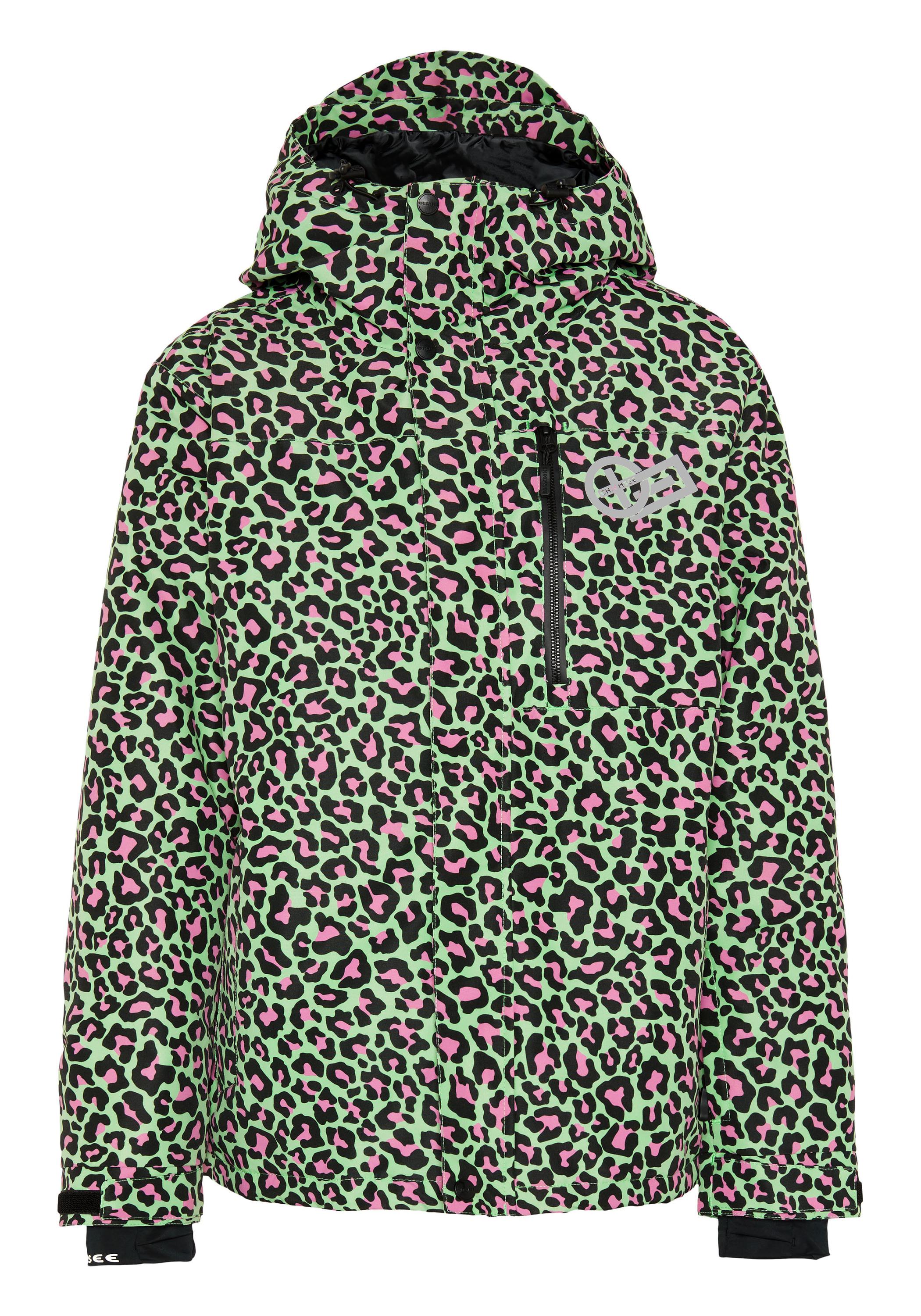 Mit der CHIEMSEE Damen Skijacke im angesagten Leo-All-Over-Print setzt du ein starkes Fashion-Statement auf der Piste – ohne auf Funktion zu verzichten. Das robuste Funktionsmaterial schützt zuverlässig vor Wind und Wetter, während der Regular Fit für Bewegungsfreiheit beim Boardsport sorgt. Der verdeckte Frontzipper mit Druckknopfleiste, die verstellbare Kapuze, sowie der anpassbare Saum mit elastischem Zugband und Stoppern bieten optimalen Wetterschutz. Ärmelabschlüsse mit Klettverschluss und elastischen Cuffs halten Schnee und Kälte draußen. Praktische Features wie Unterarmbelüftung, Skipass- und Brusttaschen mit Zipper, sowie ein fixierter Schneefang machen die Jacke zur idealen Begleiterin für aktive Wintertage im Boardsport.