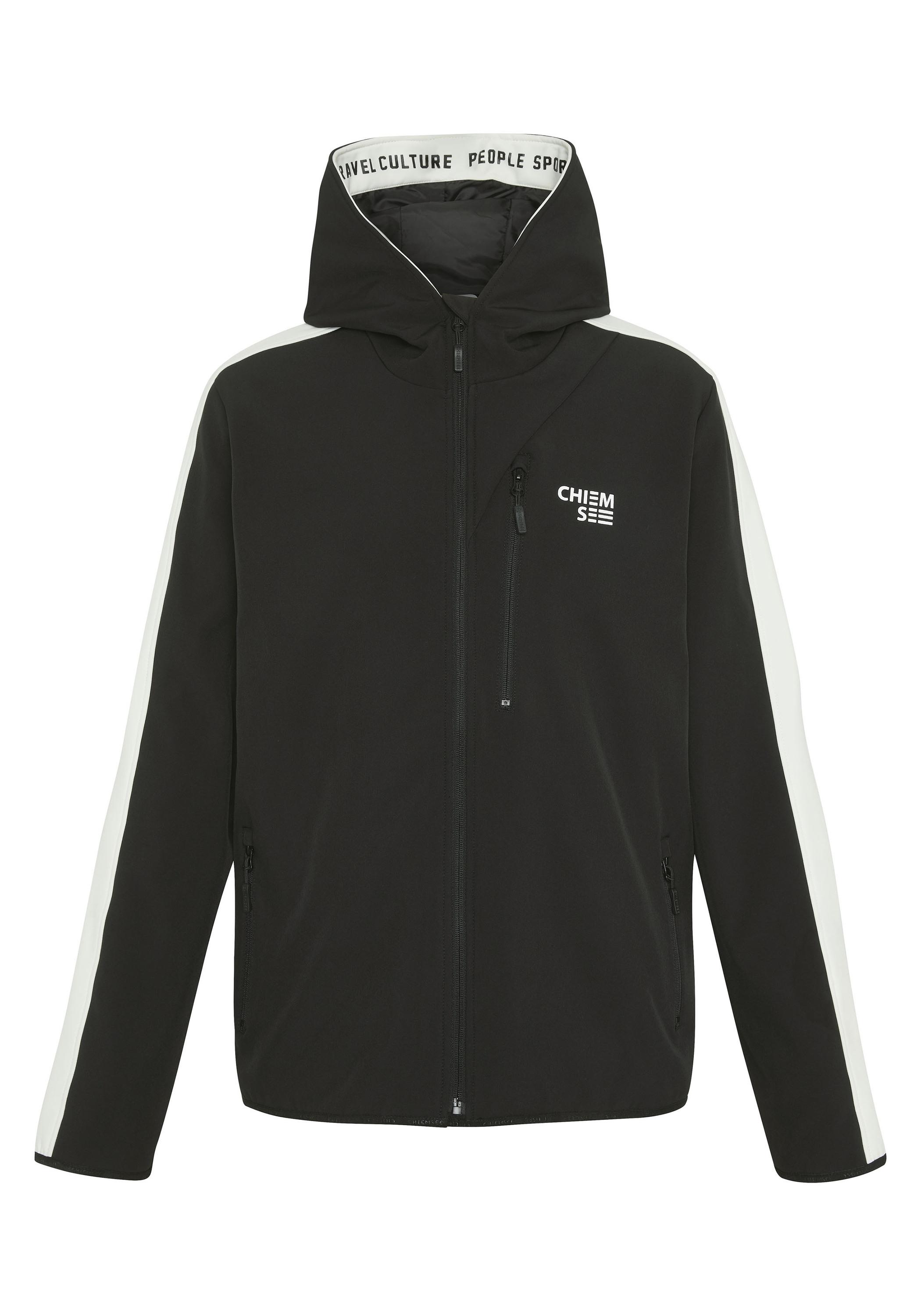 Innovativer Schnitt und retro-inspiriertes Label-Patch prägen die Herren-Funktionsjacke von CHIEMSEE. Dank der Softshell-Qualität überzeugt sie zudem durch Wasserdichtigkeit und Atmungsaktivität. Auch auf den zweiten Blick überrascht der Freizeit-Style mit Coolness: Innen an der Kapuze blitzen „people sport“-Schriftzüge hervor. Blockstreifen an den Ärmeln und die dynamisch geschnittene Vorderseite vollenden die CHIEMSEE Softshell-Jacke zum Must-have für deine Outdoor-Aktivitäten.