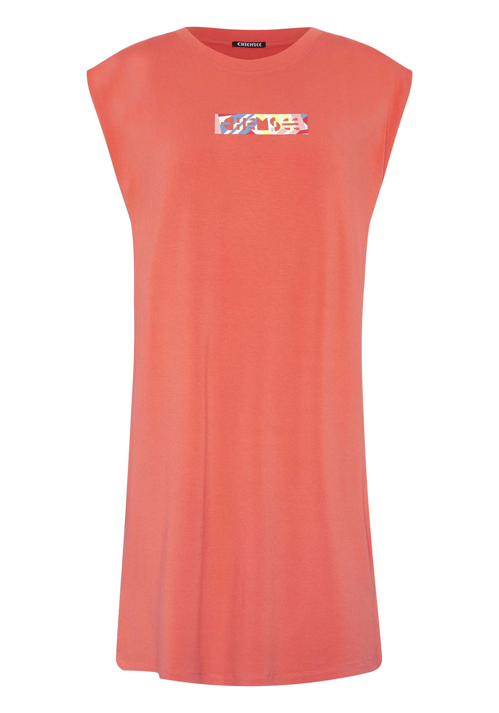 Warmwetter-Must-have: In lockerer Silhouette umspielt das bedruckte CHIEMSEE Damen-Kleid aus Jersey die weiblichen Konturen. Für einen farbenfrohen Eyecatcher sorgt der Label-Schriftzug an der Vorderseite. Ob am Beach oder in der City – das CHIEMSEE Dress versprüht sommerliche Vibes.