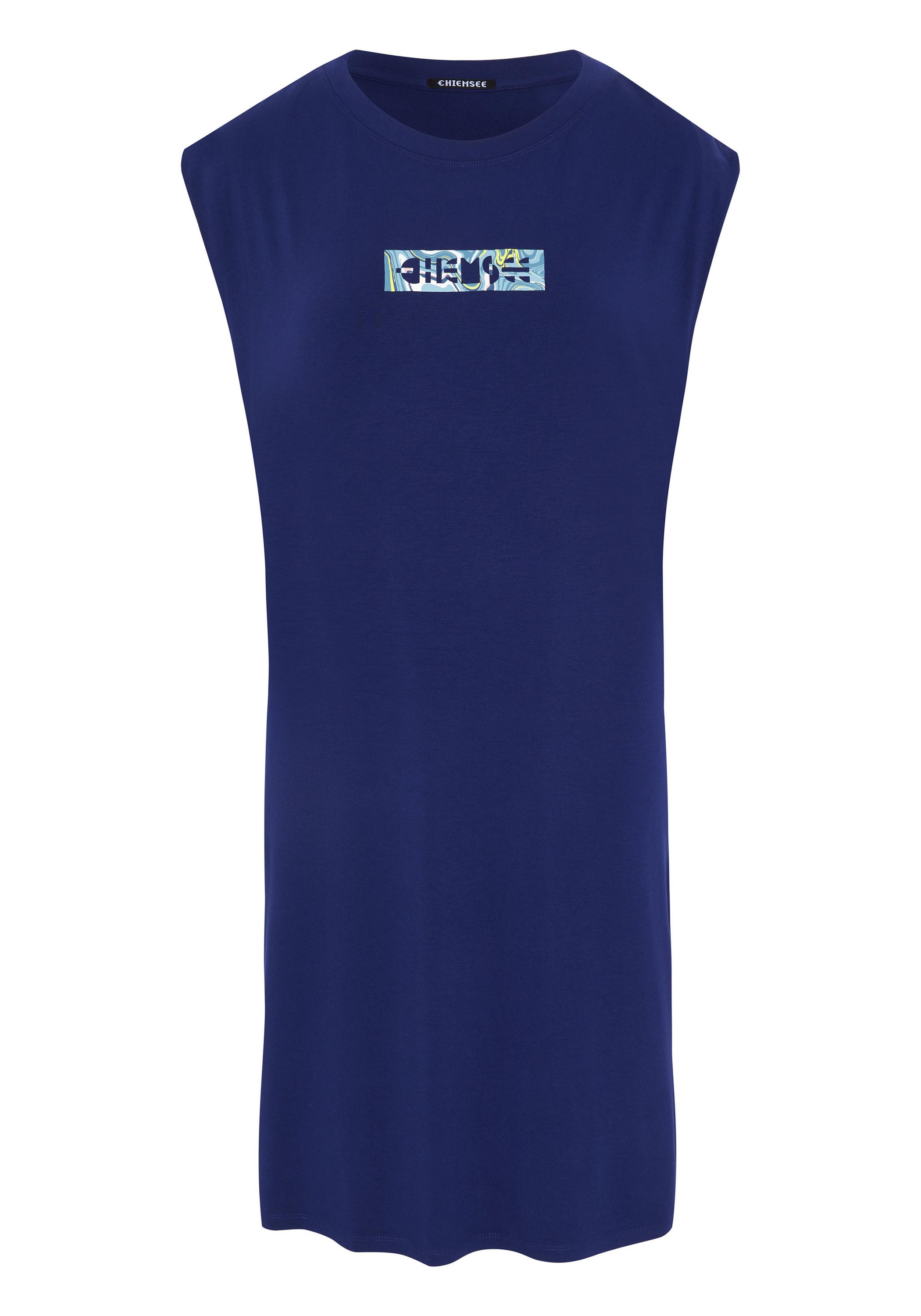 Warmwetter-Must-have: In lockerer Silhouette umspielt das bedruckte CHIEMSEE Damen-Kleid aus Jersey die weiblichen Konturen. Für einen farbenfrohen Eyecatcher sorgt der Label-Schriftzug an der Vorderseite. Ob am Beach oder in der City – das CHIEMSEE Dress versprüht sommerliche Vibes.