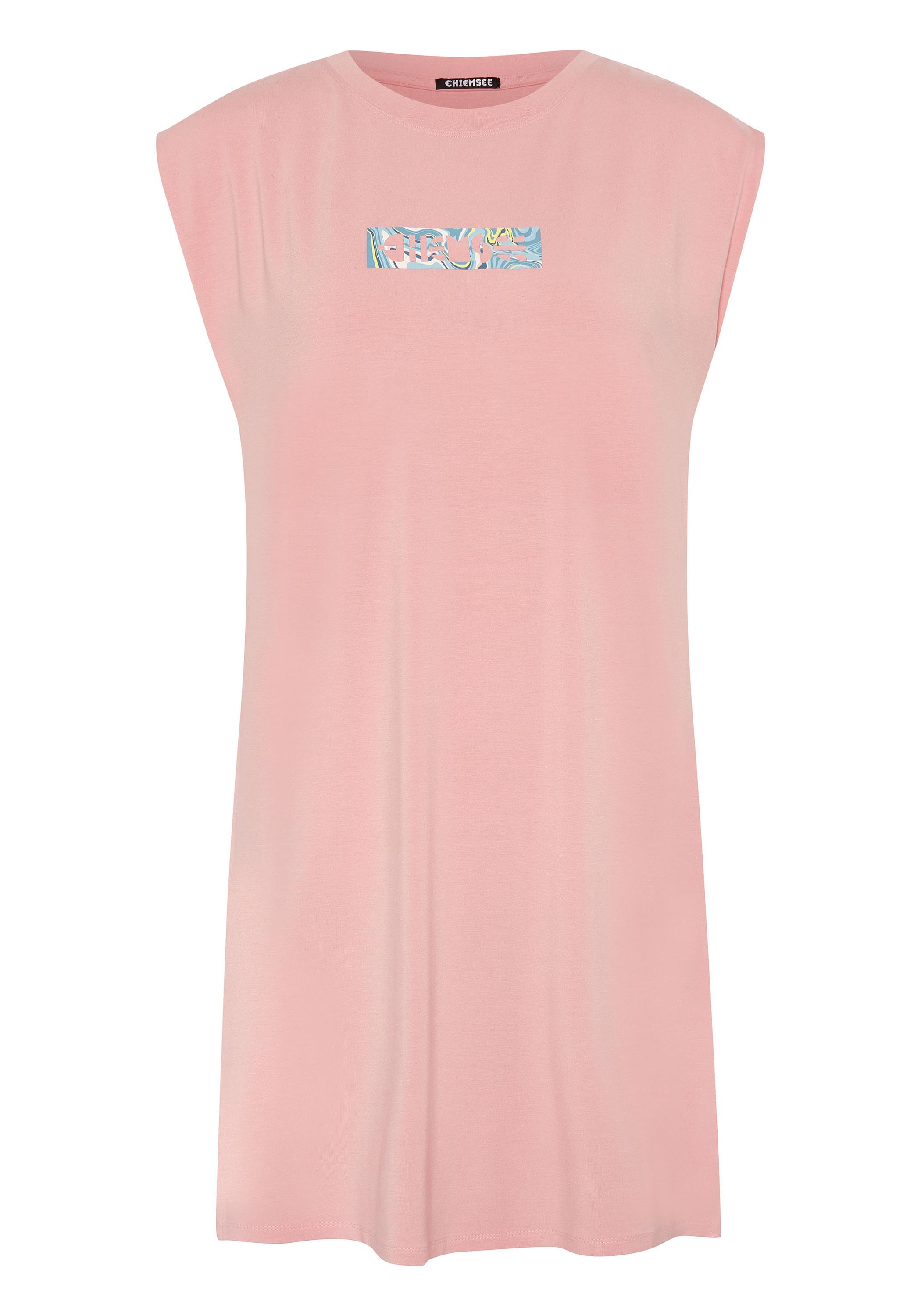 Warmwetter-Must-have: In lockerer Silhouette umspielt das bedruckte CHIEMSEE Damen-Kleid aus Jersey die weiblichen Konturen. Für einen farbenfrohen Eyecatcher sorgt der Label-Schriftzug an der Vorderseite. Ob am Beach oder in der City – das CHIEMSEE Dress versprüht sommerliche Vibes.