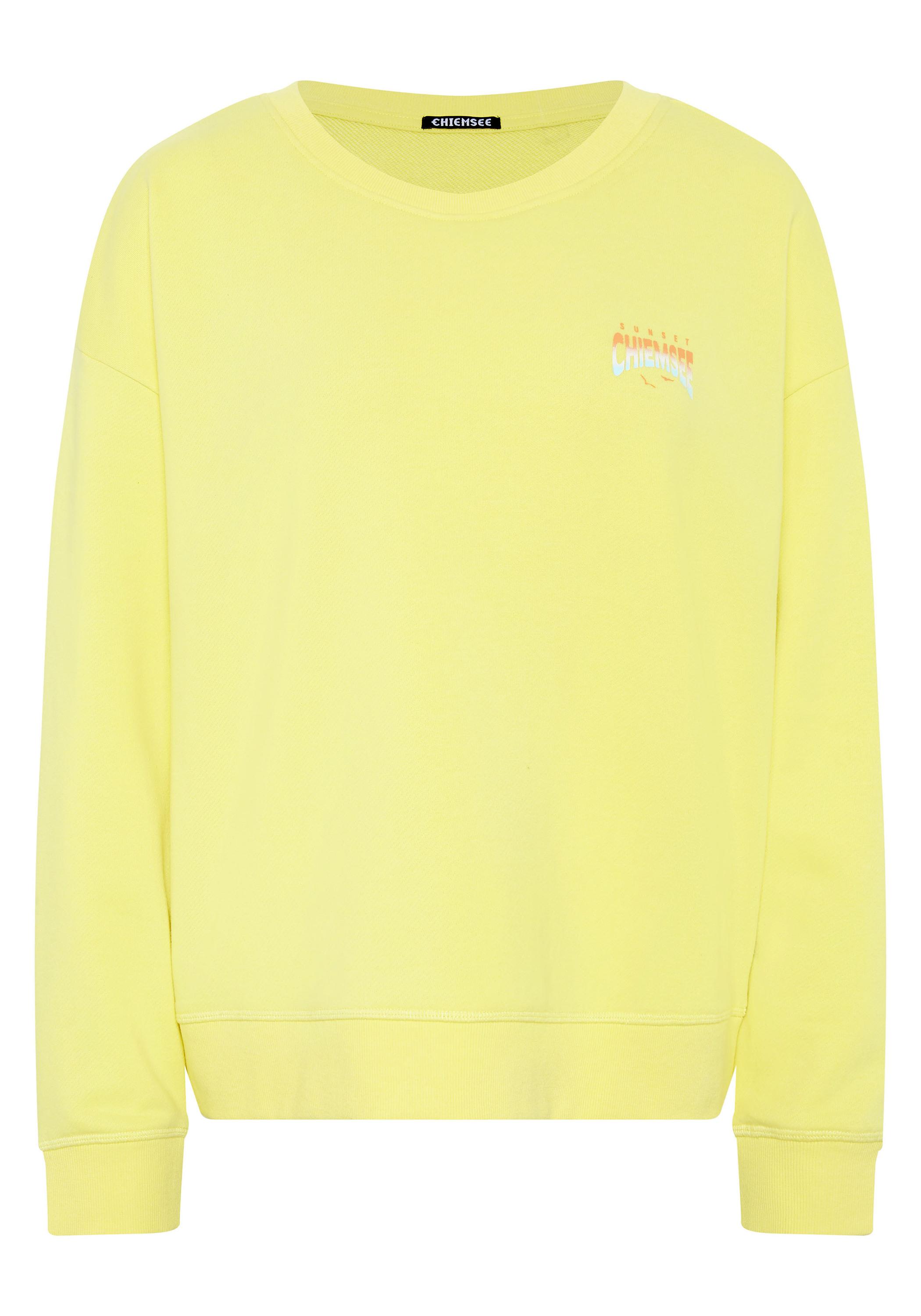 CHIEMSEE und SUNSET-Schriftzüge treffen bei dem Damen-Sweater rückseitig auf idyllisches Palmen- und Meer-Motiv. Dieses erfrischende Print-Design wird an der Vorderseite wieder aufgegriffen – und zwar als Schriftzug. Dank der soften Baumwoll-Melange lädt dich der Sweater von CHIEMSEE zum Wohlfühlen ein. Ob unterwegs oder zu Hause getragen – das neu aufgelegte Essential versetzt beim bloßen Anblick in Urlaubsstimmung.