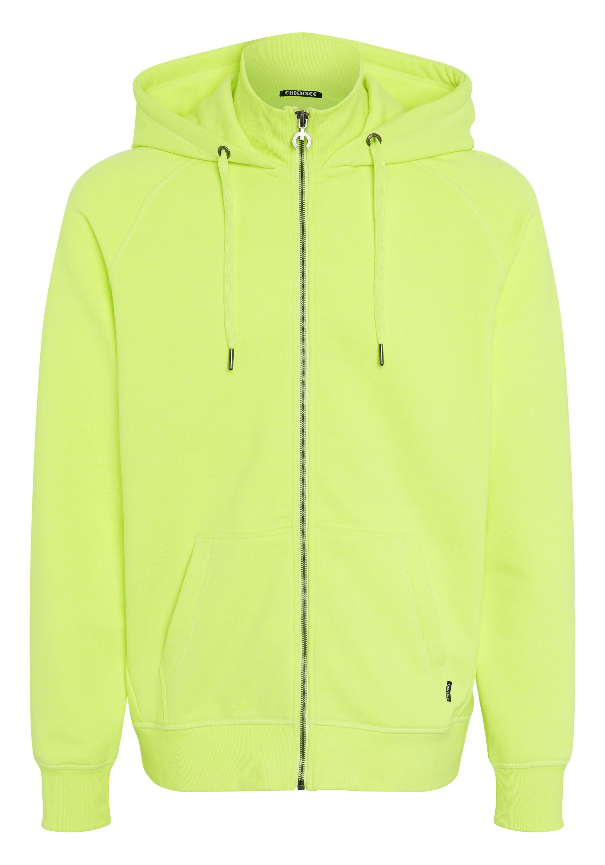 Mit der Kapuzensweatjacke von CHIEMSEE ist man immer sportlich-lässig unterwegs! Der Look zeichnet sich durch eine Kapuze mit Kordelzug und kleinem Stehkragen aus. Auch Logodetails wie der Flockprint auf dem Rücken setzt bei der Männerjacke ein dekoratives Element. Raglanärmel und eine geteilte Kängurutasche unterstreichen den lässigen Aspekt des Zip-Hoodies. Jetzt kann das Freizeitvergnügen kommen.