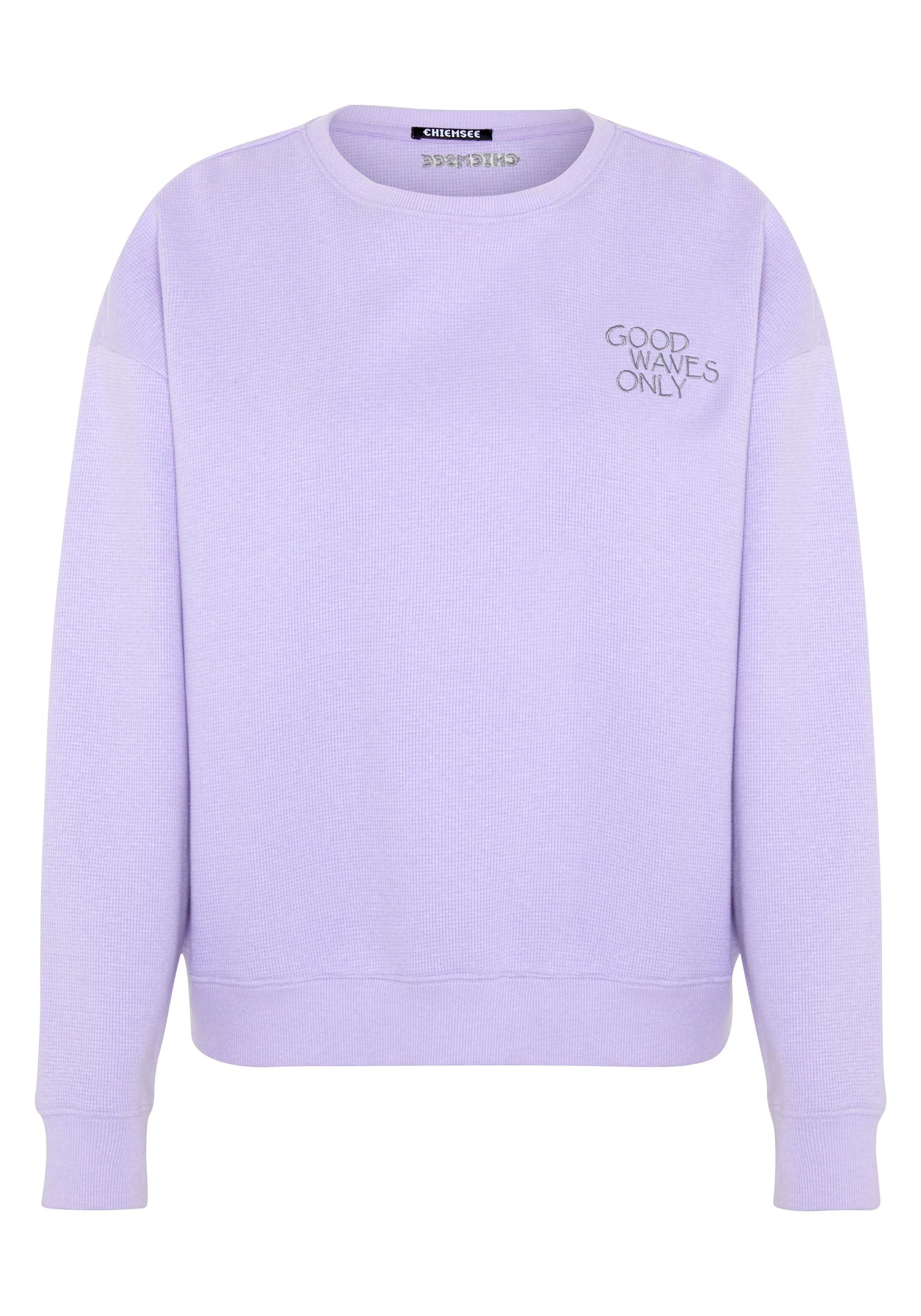 Der CHIEMSEE Sweater aus einer soften Baumwollmischung ist wie geschaffen für Damen mit einem sportlichen Lifestyle. Dank seines cleanen und doch modernen Designs lässt er sich mühelos in die Freizeit-Garderobe integrieren. Er wird lediglich von einer Label-Stickerei und einem „Good Waves Only“-Spruch auf der Brust akzentuiert. Mit dem lässig geschnittenen Sweater von CHIEMSEE drehst du Active-Looks auf fashionable und unterstützt MBRC® the ocean bei ihren weltweiten Ocean-Clean-ups.