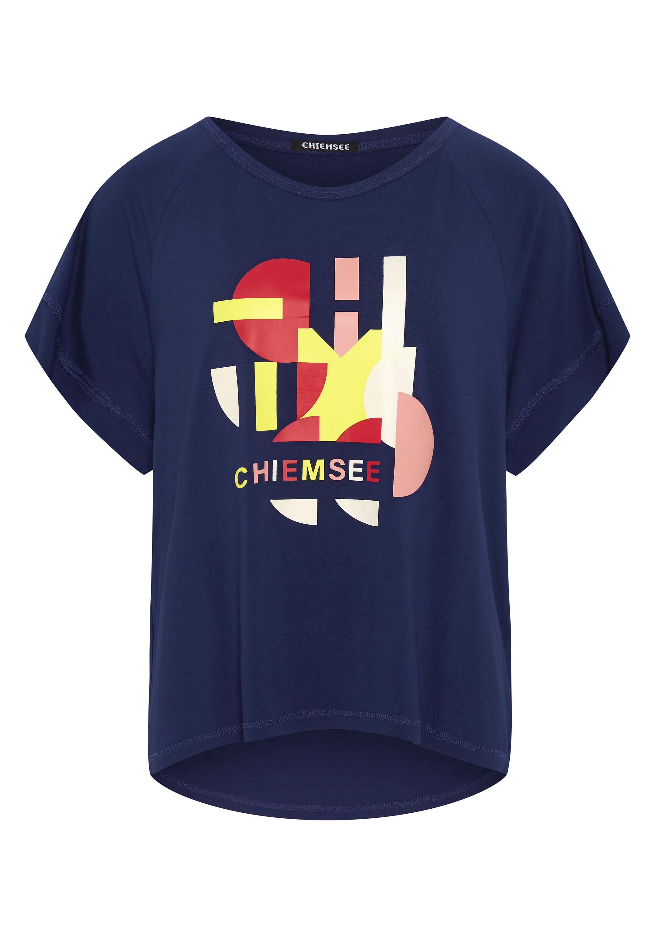 Stylisher geht’s kaum: Das bunt bedruckte CHIEMSEE T-Shirt verleiht deinen Freizeit-Outfits eine Portion Individualität. Dafür sorgen der geometrisch interpretierte Label-Frontprint und der lockere, kastige Schnitt. Dank der weichen Viskose mit Elasthananteil fühlt sich das Damen-Shirt von CHIEMSEE herrlich soft an.