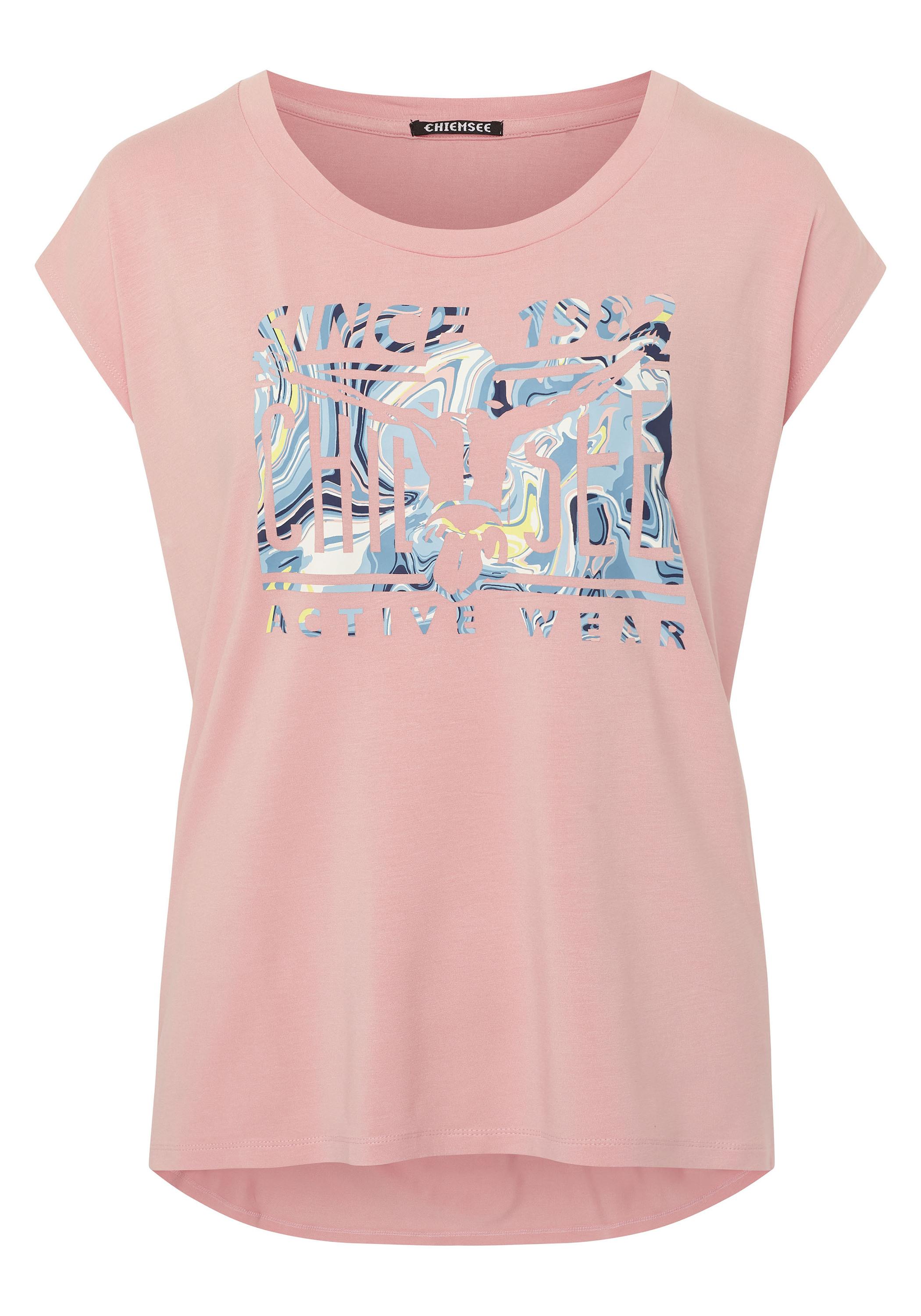 In dem erfrischend bedruckten Damen-Shirt von CHIEMSEE kannst du dich nur wohlfühlen. Denn es hat eine boxy Trend-Silhouette und einen modernen Jumper-Print im mehrfarbigen Wave-Look. Für eine softe Haptik sorgt der Mix aus Viskose und Elasthan. Et voilà: Fertig ist dein neues Lieblings-Shirt von CHIEMSEE.