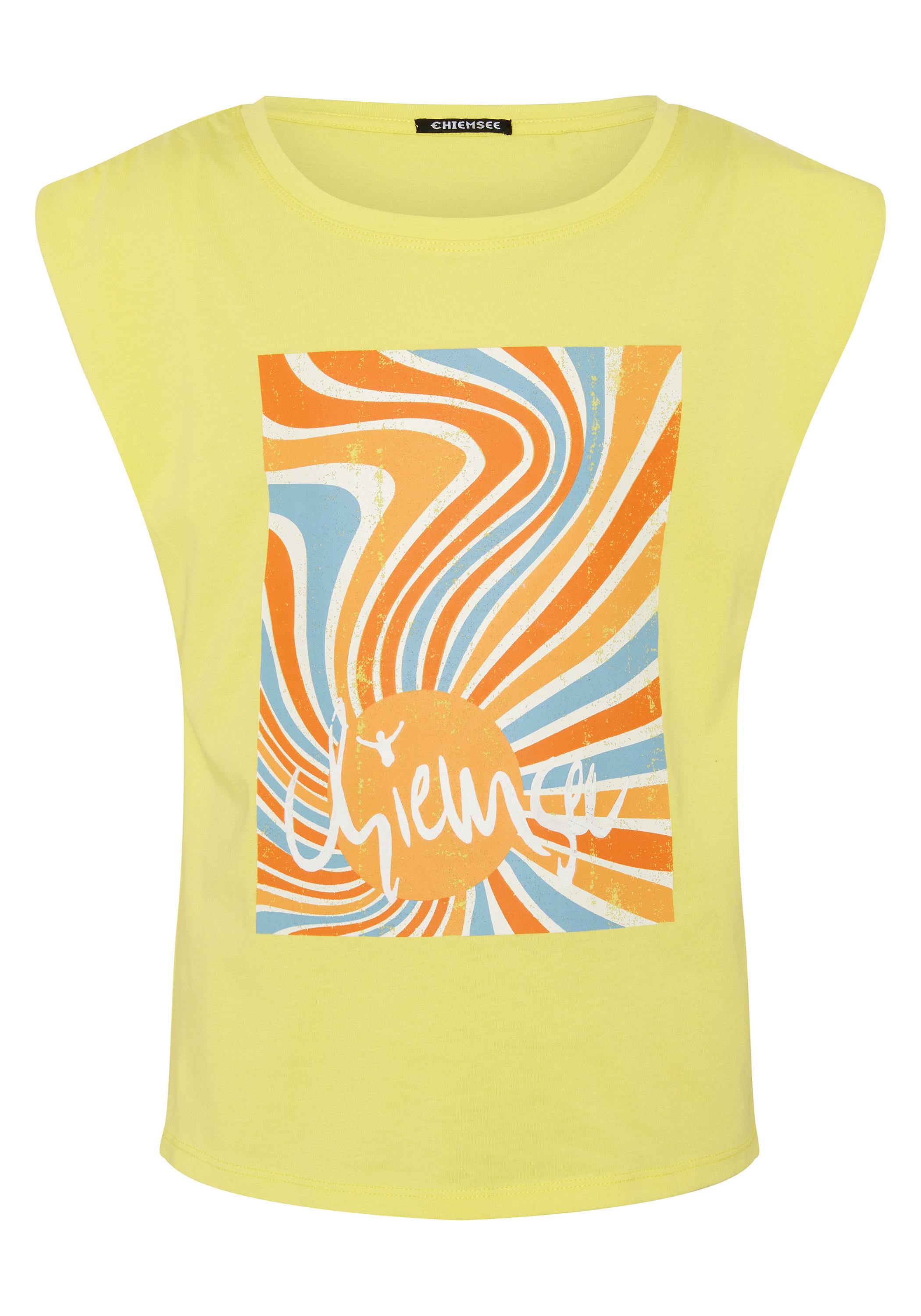 Bei dem trendigen CHIEMSEE Mädchen-Top trifft vintage-inspiriertes Sonnenmotiv auf Label-Schriftzug. Dieser coole Mix findet in der soften Baumwollqualität seine Krönung. Hiermit hat CHIEMSEE ein Top kreiert, das blitzschnell zum Summer-Favoriten wird.