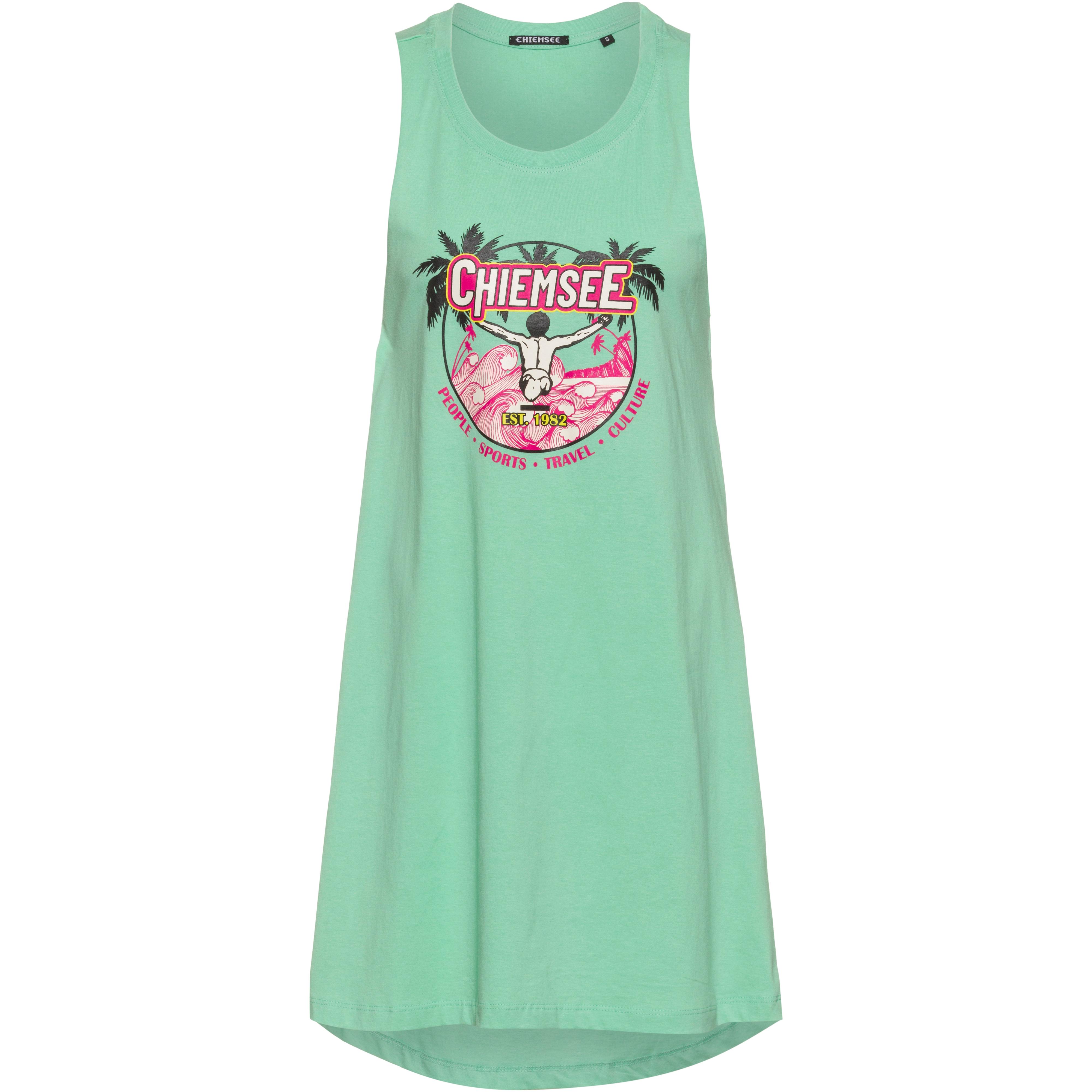 Stylishes Trägerkleid mit Cut Out im Rückenbereich; Rundhalsausschnitt mit Rippbündchen; weite Ärmelausschnitte; Print auf der Front; Ringerrücken; leicht verlängertes und abgerundetes Rückenteil; lockere Passform; Rückenlänge: ca. 90 cm/Gr. S; Grüner Knopf-Produkt aus sozialer und ökologischer Herstellung; Material 100% Baumwolle.