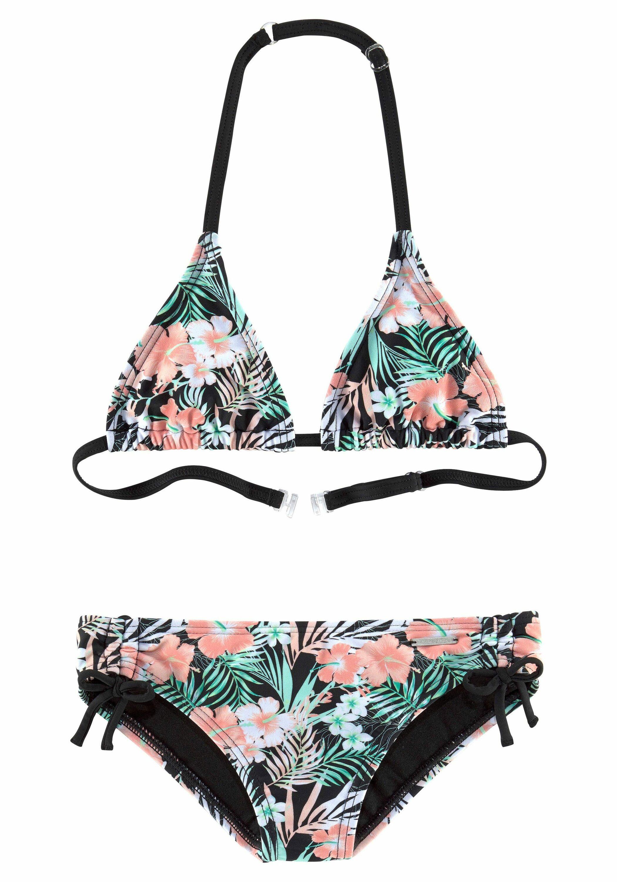 Mit tropischem Alloverprint: Triangel-Bikini von Chiemsee. Weitenregulierbares Top und im Nacken verstellbare Träger für einen guten Sitz. Hose in normaler Passform mit seitlicher Raffung. Trageangenehmes, elastisches Material.