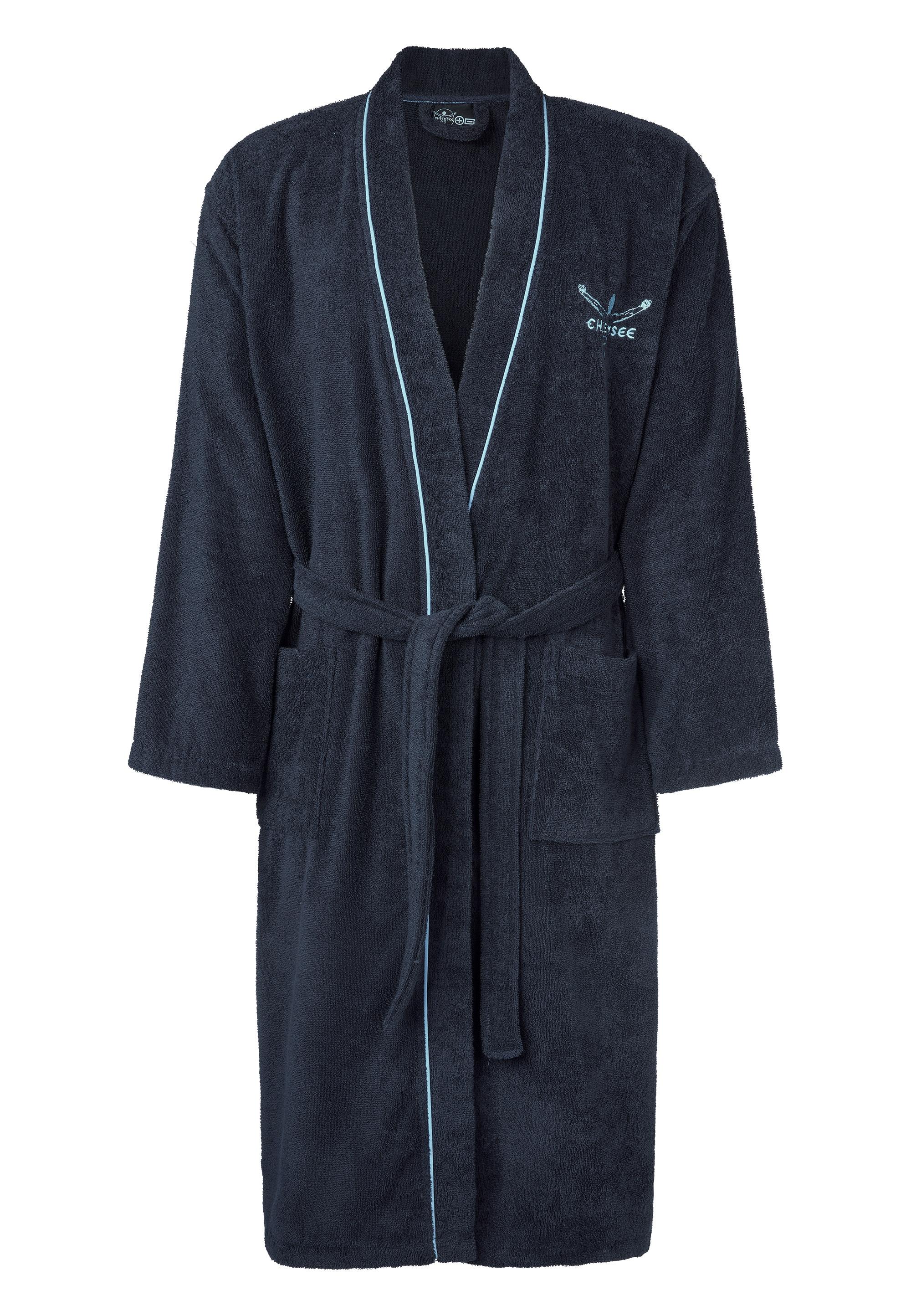 Treuer Begleiter. Ob beim Sonntagsfrühstück oder nach dem Baden, am Strand oder in der Sauna... Dein neuer Chiemsee Bademantel im Kimonostil begleitet dich und sorgt dank der reinen, kuschelweichen Baumwolle dafür, dass dir immer schön warm ist. Venice wird aus reiner Baumwolle gefertigt und ist dadurch sehr saugstark, atmungsaktiv und schnell trocknend. Was für ein Talent. Doch das ist noch nicht alles. Er ist MADE IN GREEN zertifiziert (M21LYZDD3 Hohenstein HHT) und somit ein nachhaltiger, unter fairen Bedingungen sorgsam produzierter Artikel, der zudem absolut schadstofffrei ist. Und damit du dir ein Bild von der Größe machen kannst: Größe L ist circa 120 cm lang. In den beiden Taschen kannst du so einiges verstauen. Geschlossen wird das gute Stück mit einem langen Gürtel, der sich deiner Figur perfekt anpasst und dafür sorgt, dass dein neuer Lieblingsbademantel bequem und gleichzeitig figurbetont sitzt.