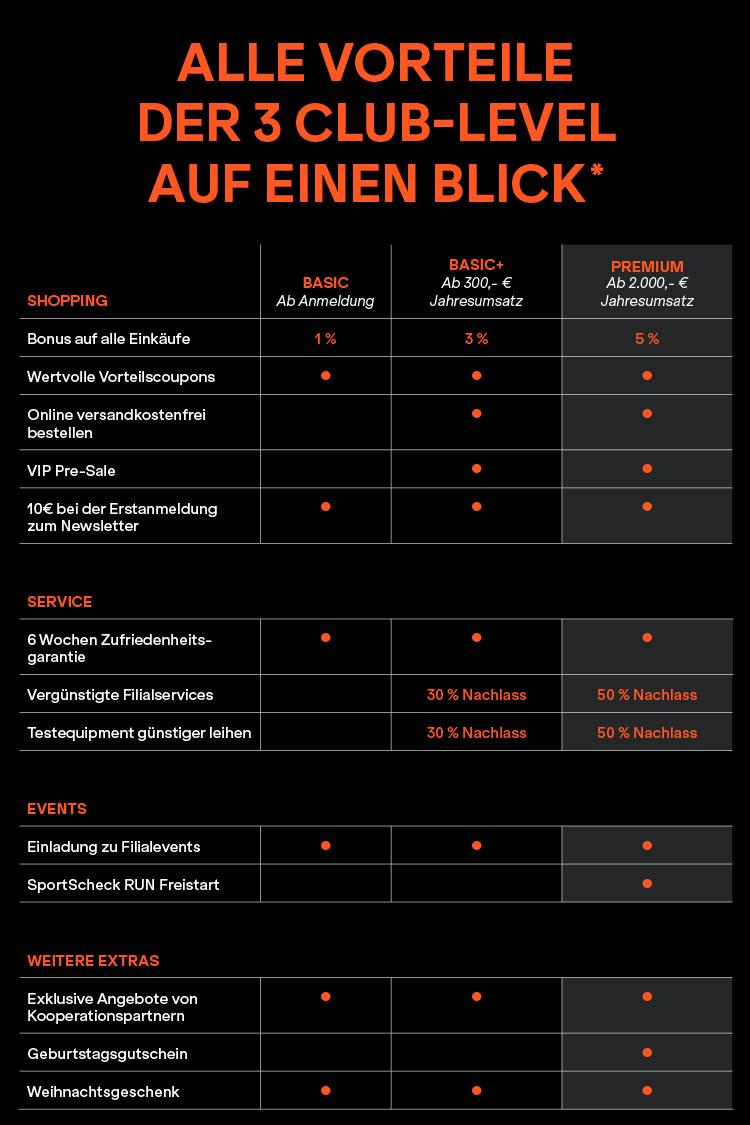 Für jeden Einkauf in unseren Filialen oder im Online Shop erhältst du Bonuspunkte. Die Höhe der Punkte richtet sich nach deinem Club-Level: