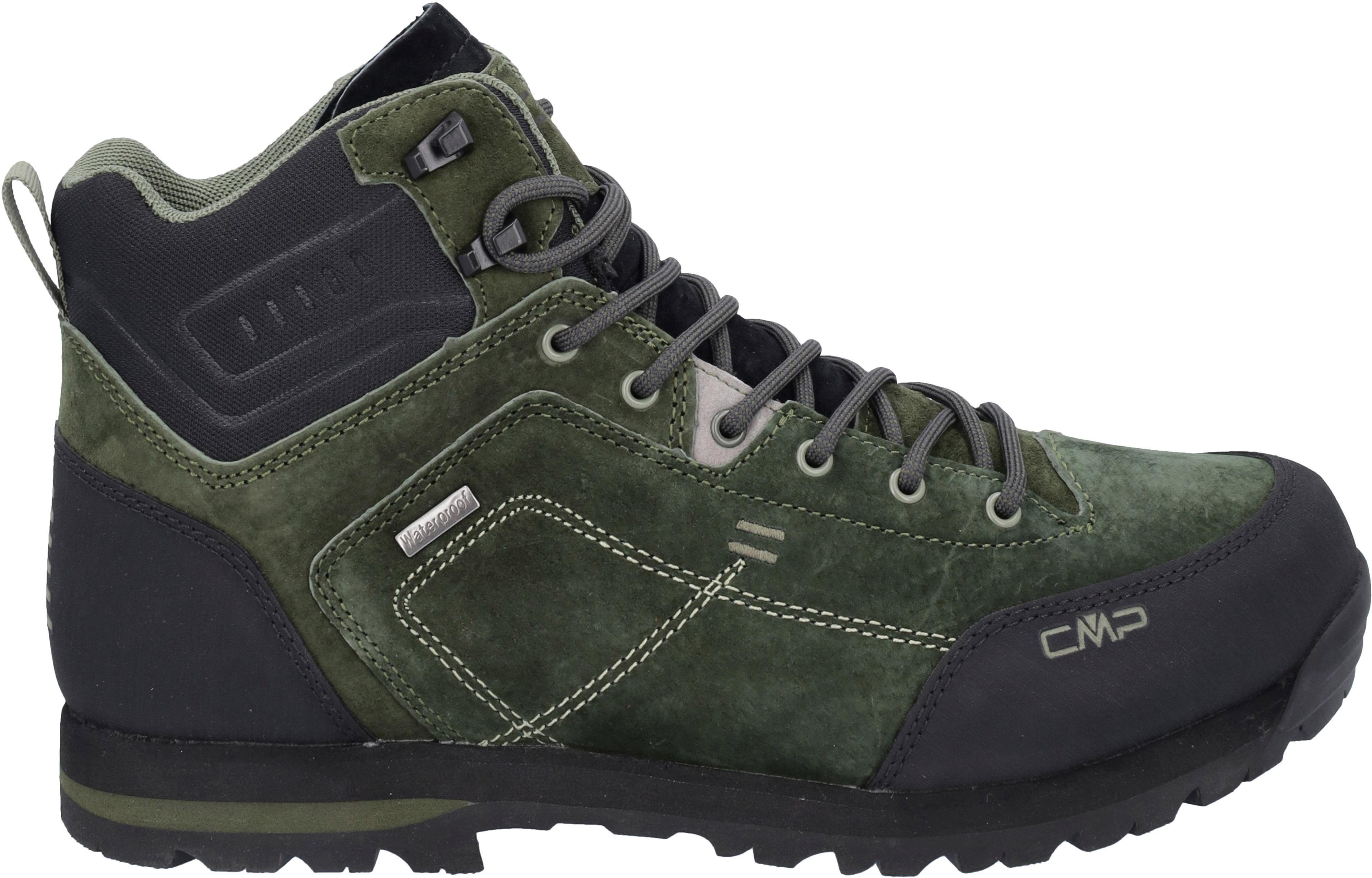 Mittelhohe Wanderschuhe aus Leder mit atmungsaktiver, wind- und wasserdichter ClimaProtect®-Technologie; Hals und Zunge aus weichem Material für einen hohen Tragekomfort; klassische Schnürung; Anziehschlaufe an der Ferse; mit Gummi verstärkte Fußspitze und Ferse mit Stütz- und Schutzfunktion; Zwischensohle aus EVA; profilierte Außensohle aus CMP Fullon GRIP Gummi; ohne PFC hergestellte wasserabweisende Beschichtung; Labeldetails.