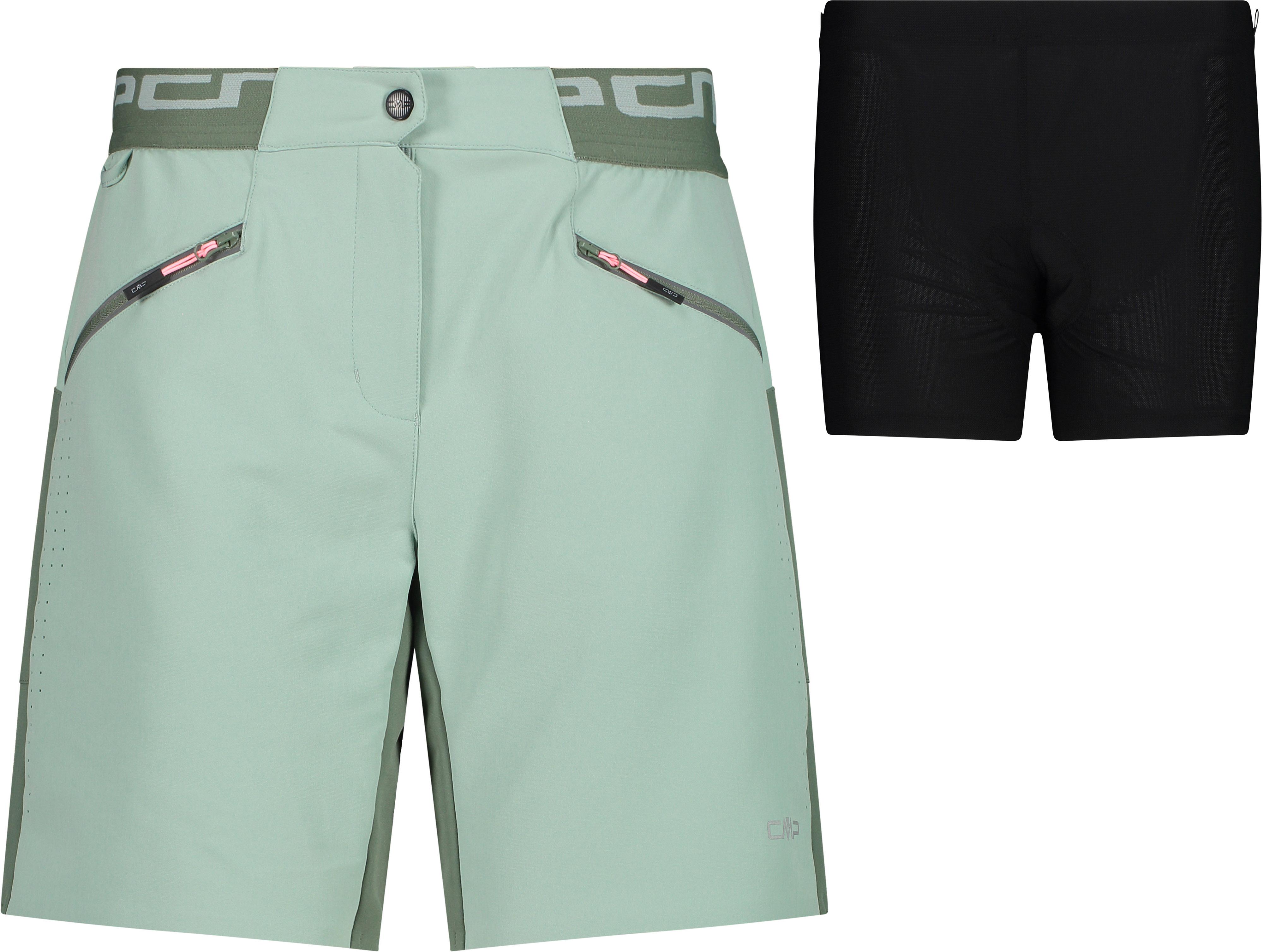 Fahrradshorts mit gepolsterter Mesh-Innenhose; Stretchmaterial mit feuchtigkeits- und wärmeregulierender Dry Function-Technologie für ein angenehm trockenes Tragegefühl; hypoallergenes, atmungsaktives Silikonpolster in komfortabler 3-Dichten-Konstruktion, auch für eine Nutzungsdauer von mehr als 5 Stunden geeignet; teilelastischer Bund mit Knopf- und Reißverschluss; 2 seitliche Reißverschlusstaschen; Reißverschlusstasche auf der Rückseite; Material I 92% Polyester, 8% Elastan; Material II 86% Polyamid, 14% Elastan; Material III 90% Polyester, 10% Elastan.