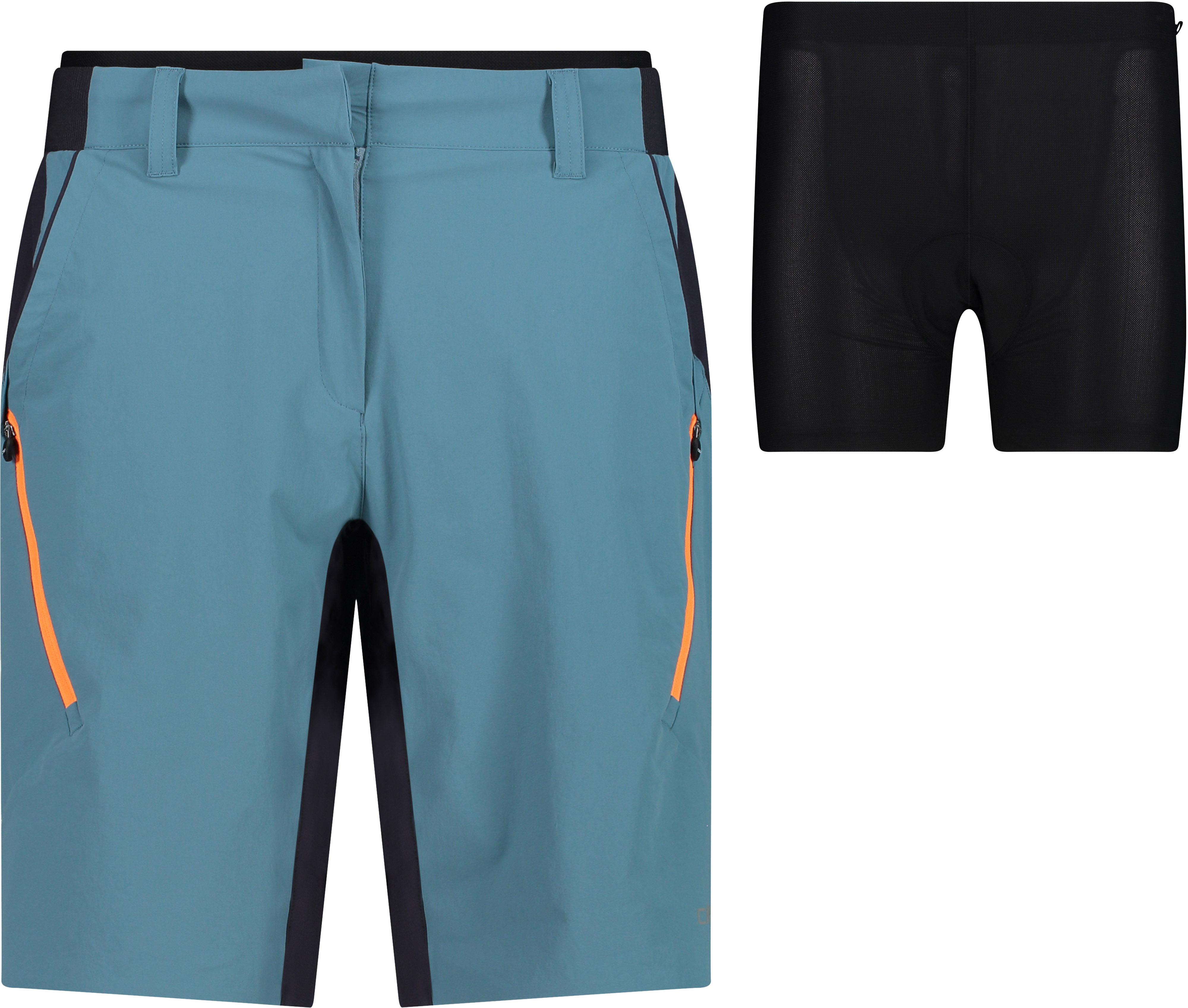 Fahrradshorts mit gepolsterter Mesh-Innenhose; 4-Wege-Stretchgewebe; mit feuchtigkeits- und thermoregulierender Dry Function-Technologie für ein angenehm trockenes Körperklima, auch bei intensiver, sportlicher Betätigung; hypoallergenes, atmungsaktives Silikonpolster in komfortabler 3-Dichten-Konstruktion, auch für eine Nutzungsdauer von mehr als 5 Stunden geeignet; Bund mit Gürtelschlaufen; 2 seitliche Eingrifftaschen und Reißverschlusstaschen am Bein; Material I 93% Polyamid, 7% Elastan; Material II 96% Polyamid, 4% Elastan; Material III 86% Polyamid, 14% Elastan; Material IV 90% Polyester, 10% Elastan.