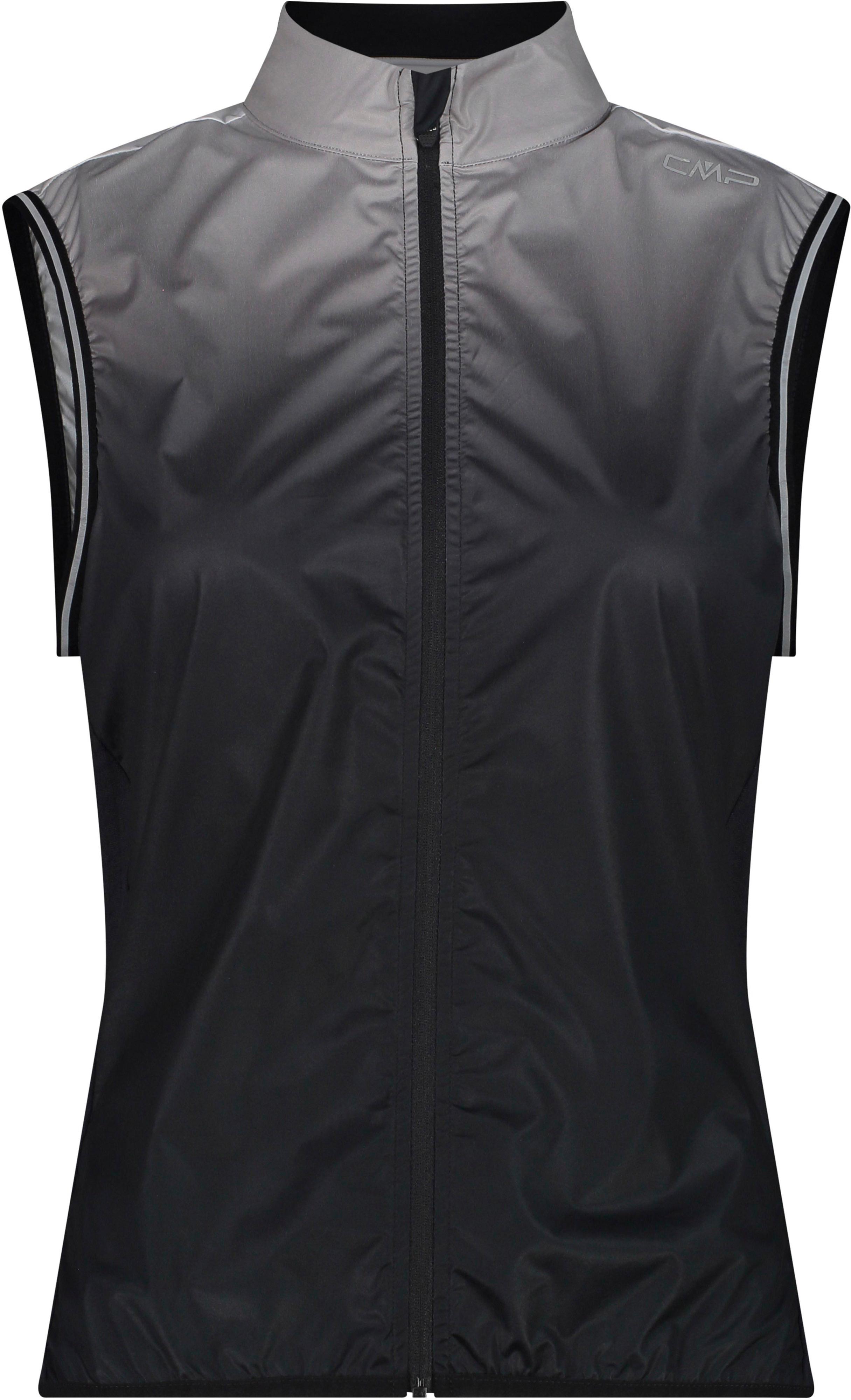 Weste aus winddichtem Softshell-Material; Stehkragen; durchgehender Frontreißverschluss; reflektierende Elemente; dreiteilige Tasche auf dem Rücken; abgerundeter Saum; Material I 100% Polyester; Material II 87% Polyester, 13% Elastan.