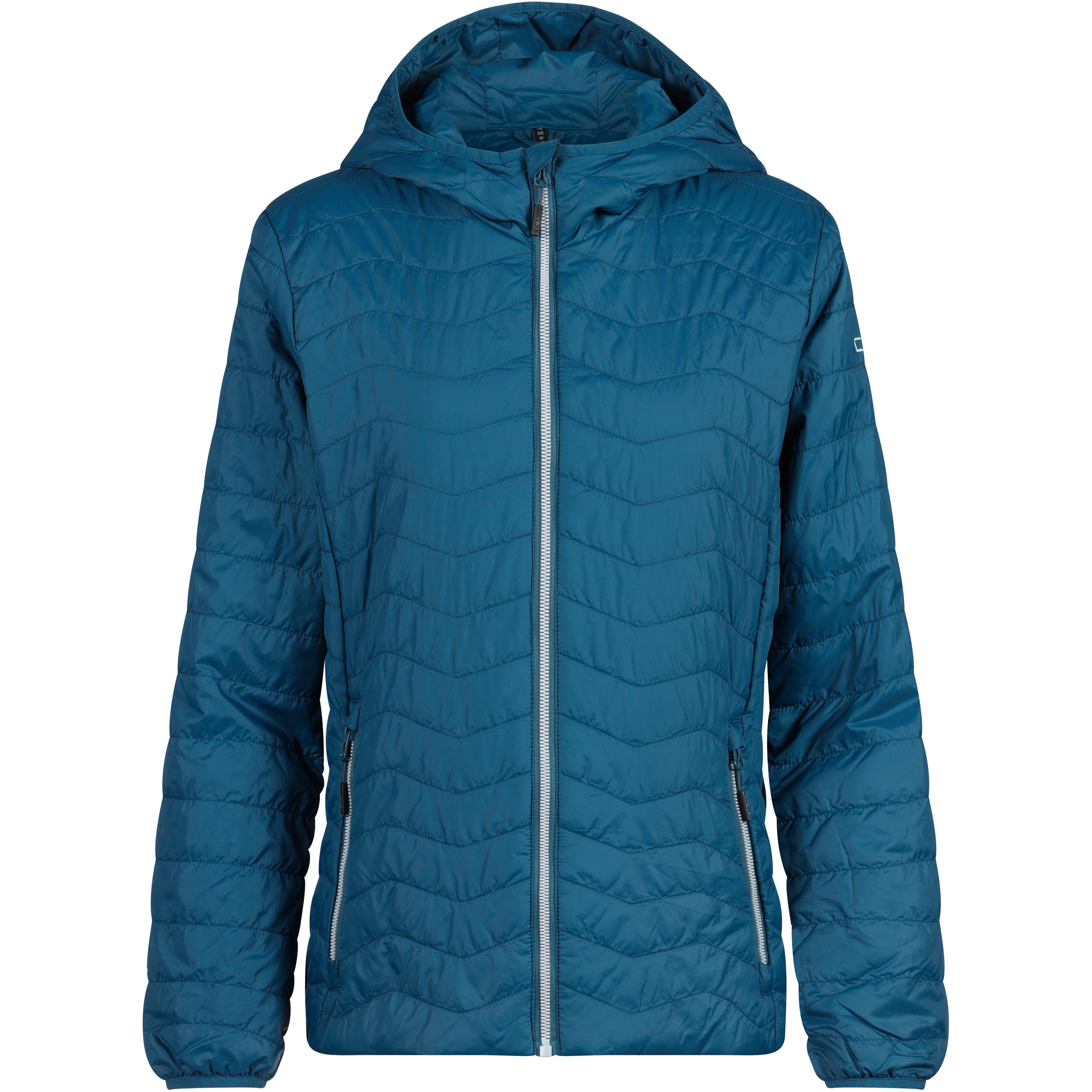 Leichte Steppjacke mit wasserabweisender Behandlung; die synthetische Feel Warm Flat-Isolierung wärmt auch bei nasser Witterung, mit geringem Volumen für maximale Bewegungsfreiheit; leicht taillierte Passform; feste Kapuze; durchgehender Frontreißverschluss; 2 Seitentaschen mit Reißverschluss; Obermaterial, Futter und Isolierung 100% Polyester.