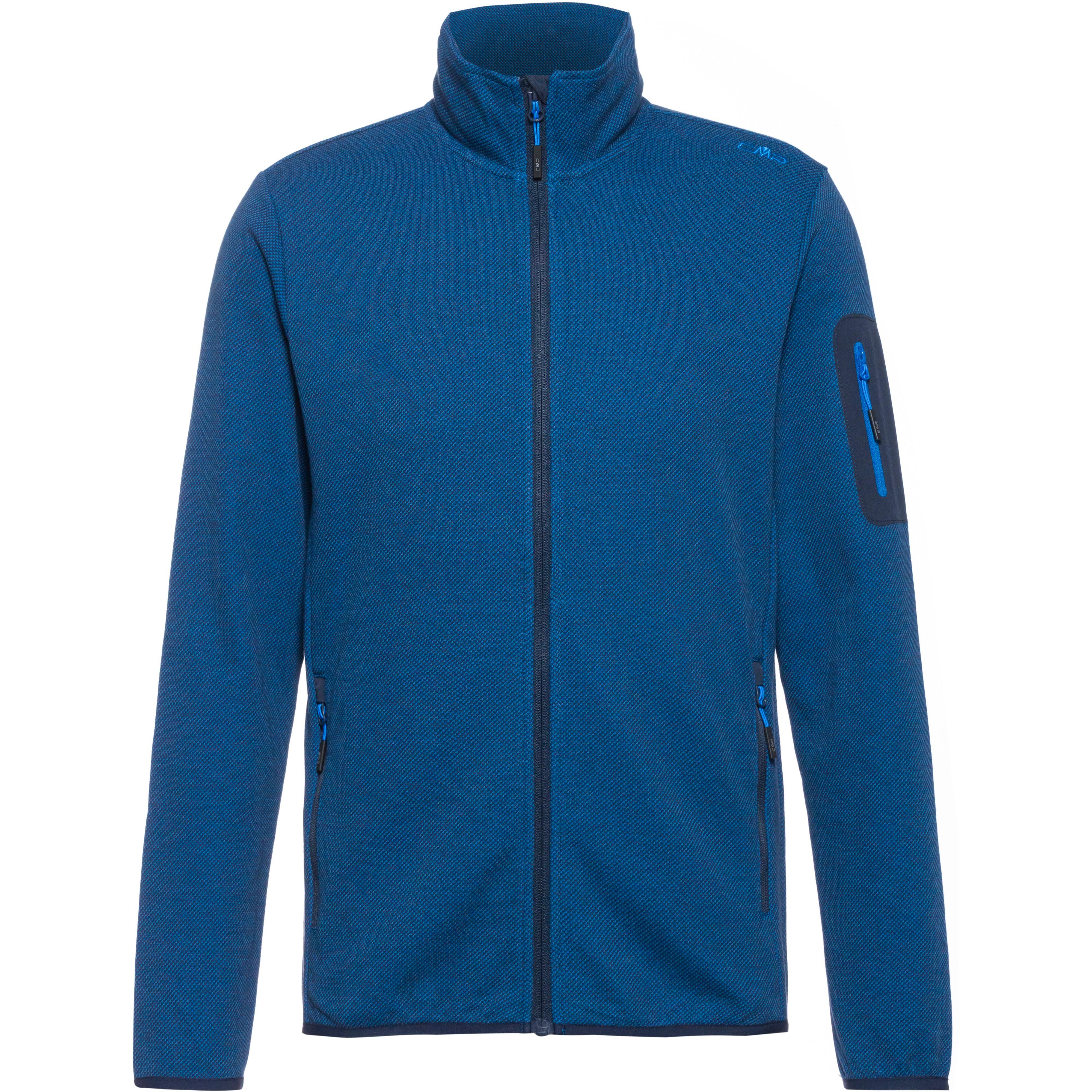 Jacke aus wärmendem, weichem Knit-Tech-Fleece; ideal als äußere Schicht bei milden Temperaturen oder als wärmende Zwischenschicht geeignet; Stehkragen; Frontreißverschluss mit Kinnschutz; eine Reißverschlusstasche am Oberarm und 2 Seitentaschen mit Reißverschluss; Material 55% Polyester, 45% Baumwolle.