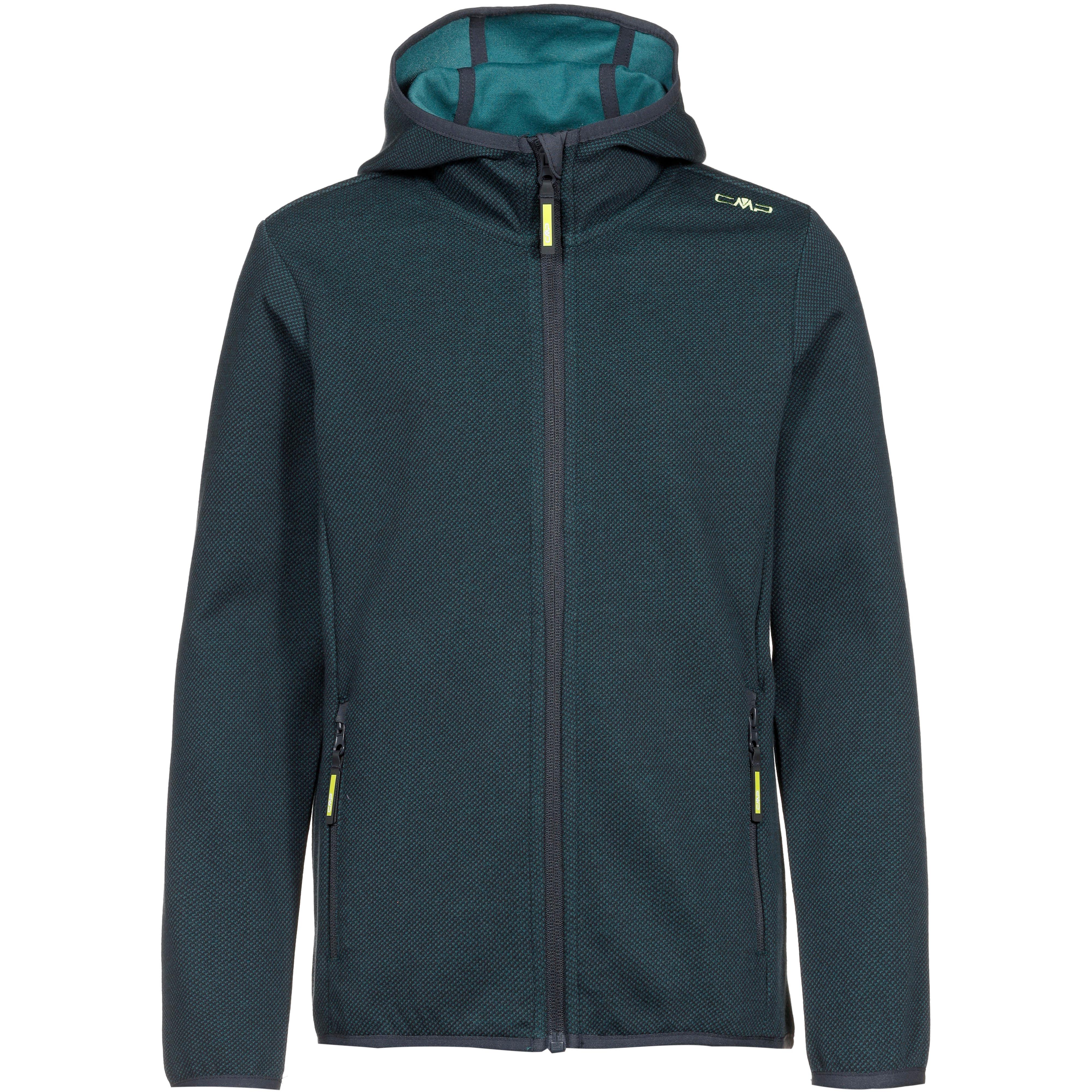 Leichte Jacke aus weichem Knit-Tech-Fleece; optimal als äußere Schicht an wärmeren Tagen oder als mittlere Schicht an kälteren Tagen geeignet; feste Kapuze mit hohem Kragen; durchgehender Frontreißverschluss; 2 Reißverschluss-Seitentaschen; Saum- und Ärmelabschlüsse elastisch eingefasst; Material 55% Polyester, 45% Baumwolle.