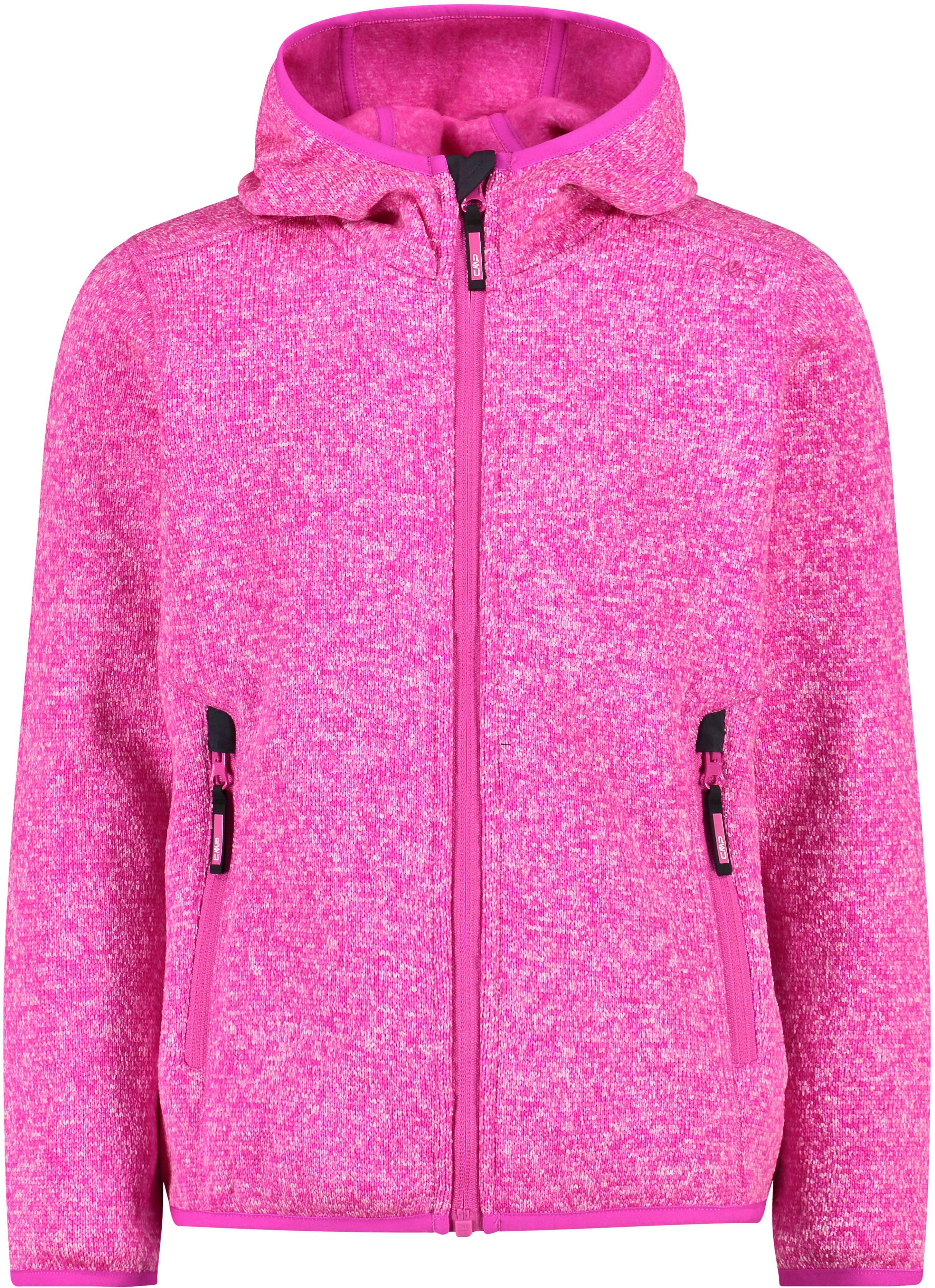 Fleecejacke in melierter Optik; aus warmem und komfortablem Knit-Tech-Material; mit Kapuze; durchgehender Reißverschluss mit Kinnschutz; 2 Seitentaschen mit Reißverschluss; elastische Bündchen an Kapuze, Saum und Ärmelabschlüssen; Material 100% Polyester.