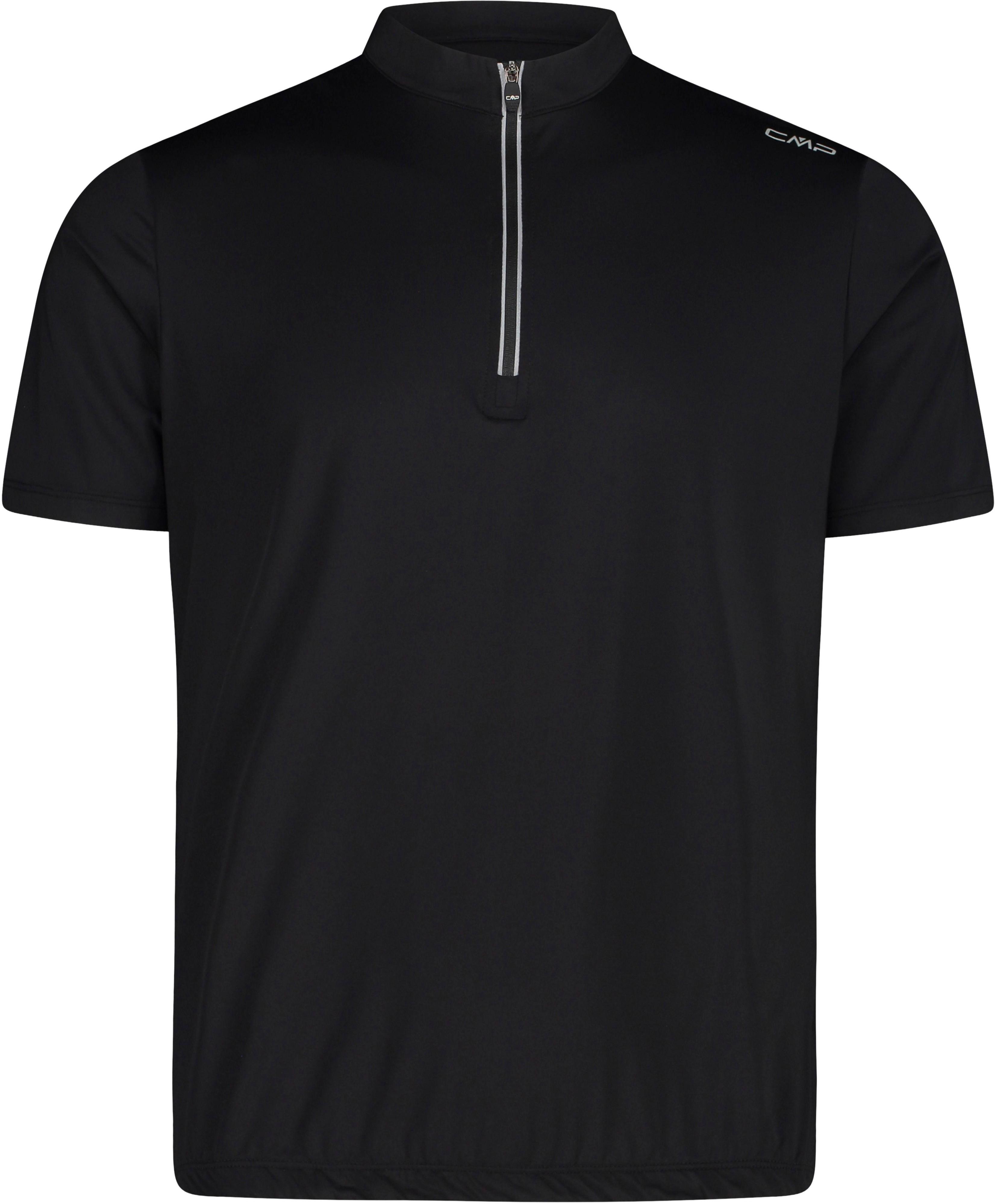 Kurzärmeliges Fahrradtrikot aus komfortablem Stretchmaterial; mit feuchtigkeitsregulierender Dry Function-Technologie für ein angenehm trockenes Körperklima; schmaler Stehkragen; kurzer Frontreißverschluss; dreiteilige Einstecktasche auf dem Rücken; Material 88% Polyester, 12% Elastan.