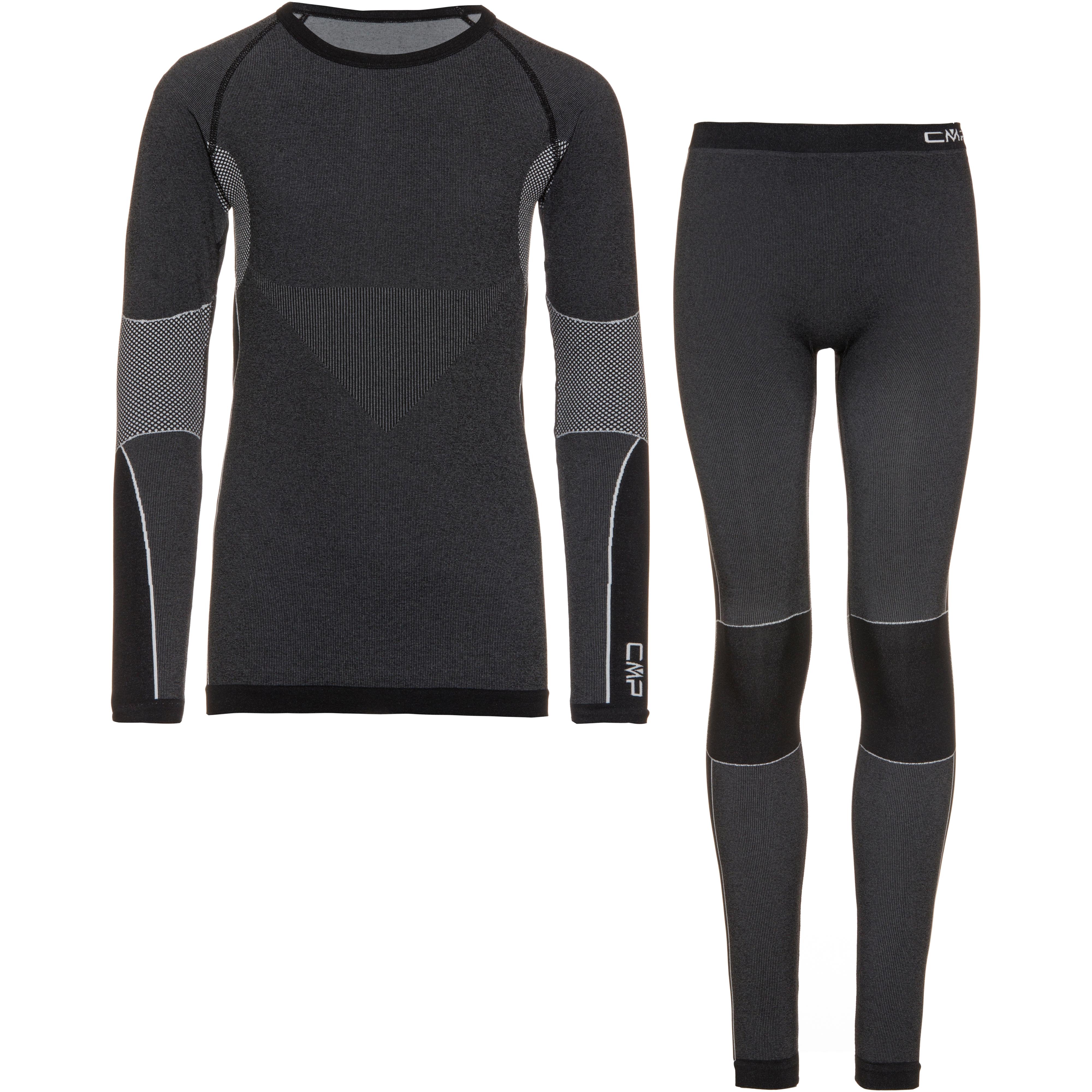 Funktionales Wäscheset für Kinder, mit schnelltrockenden, feuchtigkeitsregulierenden sowie atmungsaktiven Eigenschaften; nahtloses Design für einen reibungsarmen Tragekomfort; körpernahe Passform; Langarmshirt mit Rundhalsausschnitt; Raglanärmel für optimale Bewegungsfreiheit; lange Hose mit Gummibund; Beinabschlüsse mit Elastikbund; zertifiziert nach OEKO-TEX® Standard 100; Material 67% Polyamid, 26% Polyester, 7% Elastan.
