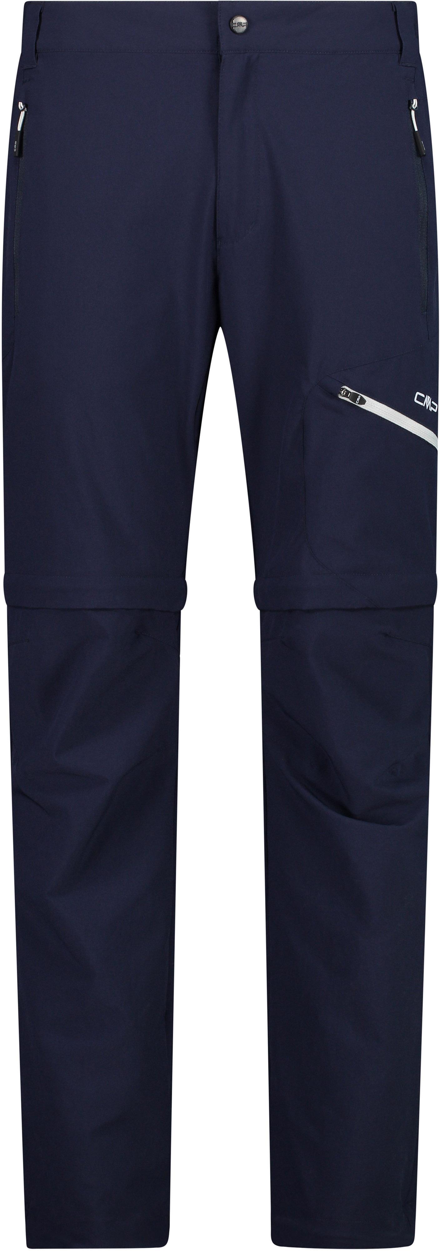 Zipp-off-Hose mit vorgeformtem Kniebereich; teilelastischer Bund mit Gürtelschlaufen; Knopf- und Reißverschluss; 2 Seitentaschen, 1 Beintasche und 1 Gesäßtasche, jeweils mit Reißverschluss; in Shorts verwandelbar; Material 91% Polyamid, 9% Elastan.