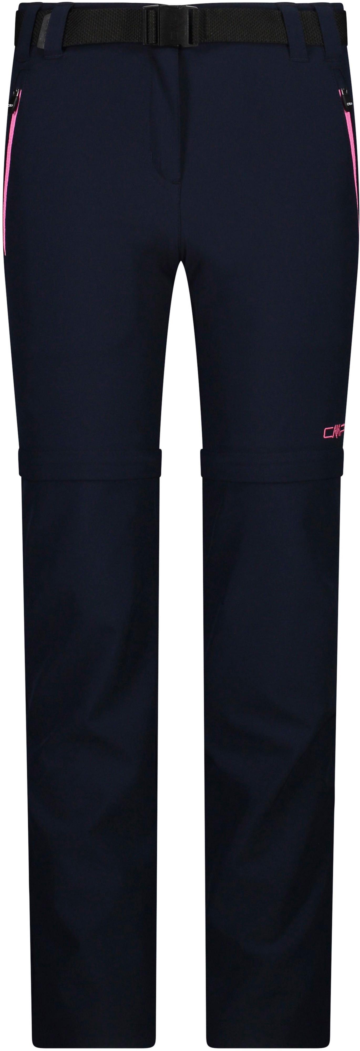 Leichte und schnelltrocknende Funktionshose mit abzippbaren Beinen; teilelastischer Bund mit Gürtel; Knopf- und Reißverschluss; 2 Seitentaschen und 1 Gesäßtasche, jeweils mit Reißverschluss; vorgeformte Kniepartie; Stretch-Qualität; Material 89% Polyester, 11% Elastan.
