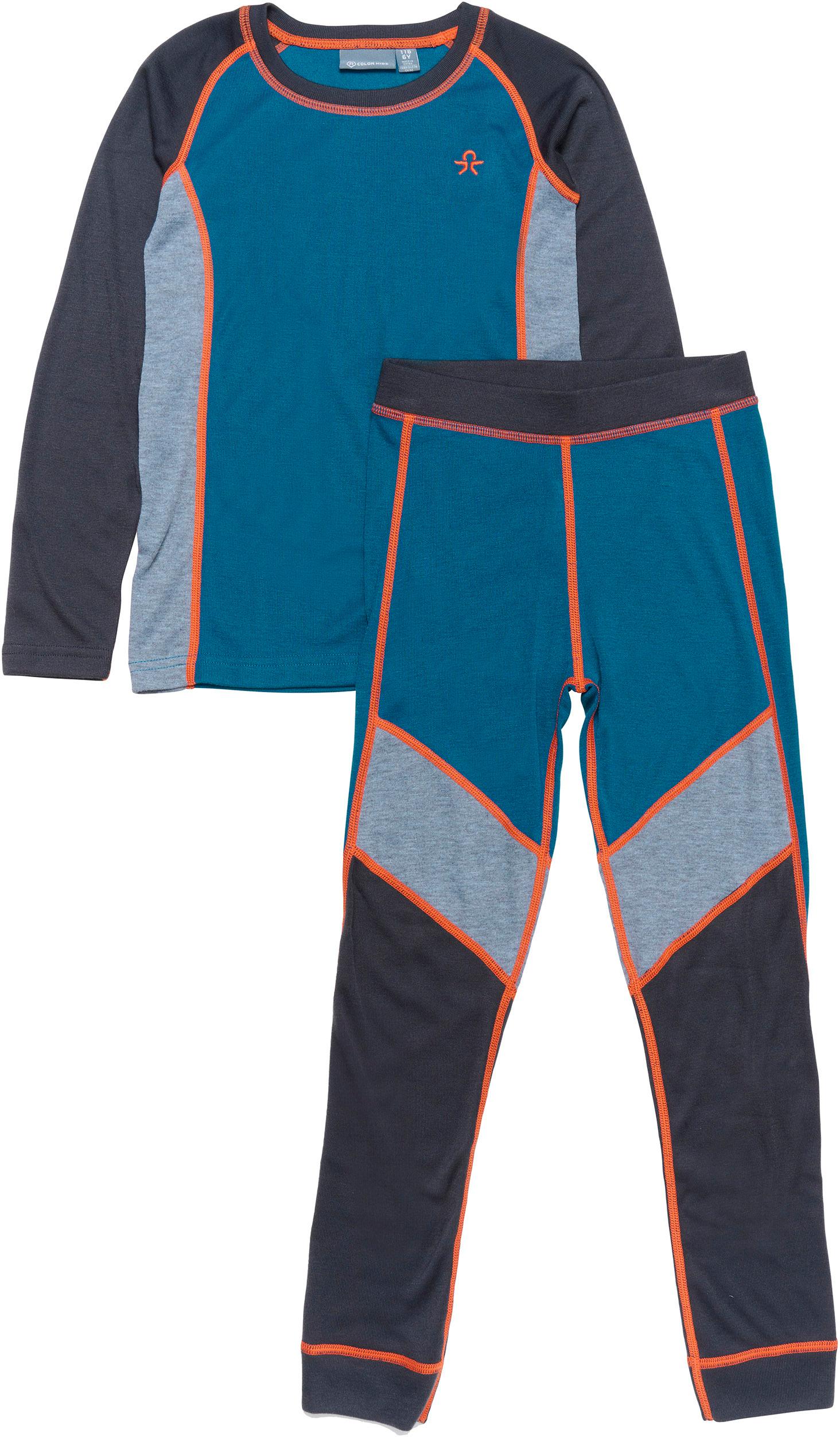 Langes Skiunterwäsche-Set aus 2 Teilen; buntes Colourblock-Design; aus atmungsaktivem und schnelltrocknendem Stretch-Material; Shirt mit rundem Halsausschnitt; Hose mit elastischem Bund; schmale Passform; Material 100% Polyester.