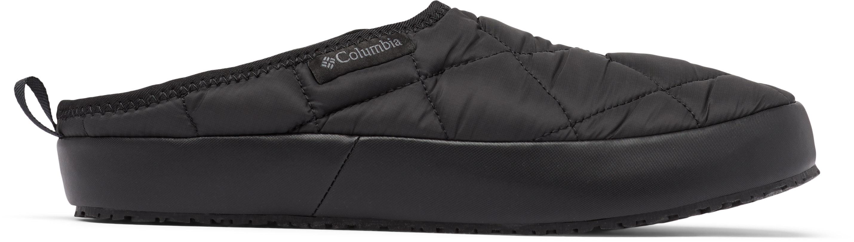 Warme Hausschuhe mit gestepptem Taffeta-Obermaterial und seitlichen Stretch-Einsätzen; umklappbare Ferse mit Zugschlasche für einfaches Hineinschlüpfen; mit wärmendem OmniHeat™ Futter, welches die eigene Körperwärme reflektiert; atmungsaktiv; Drop-in-Komfort-Einlegesohle; EVA-Fußbett; beflockte Textil-Außensohle; normale Schuhweite.