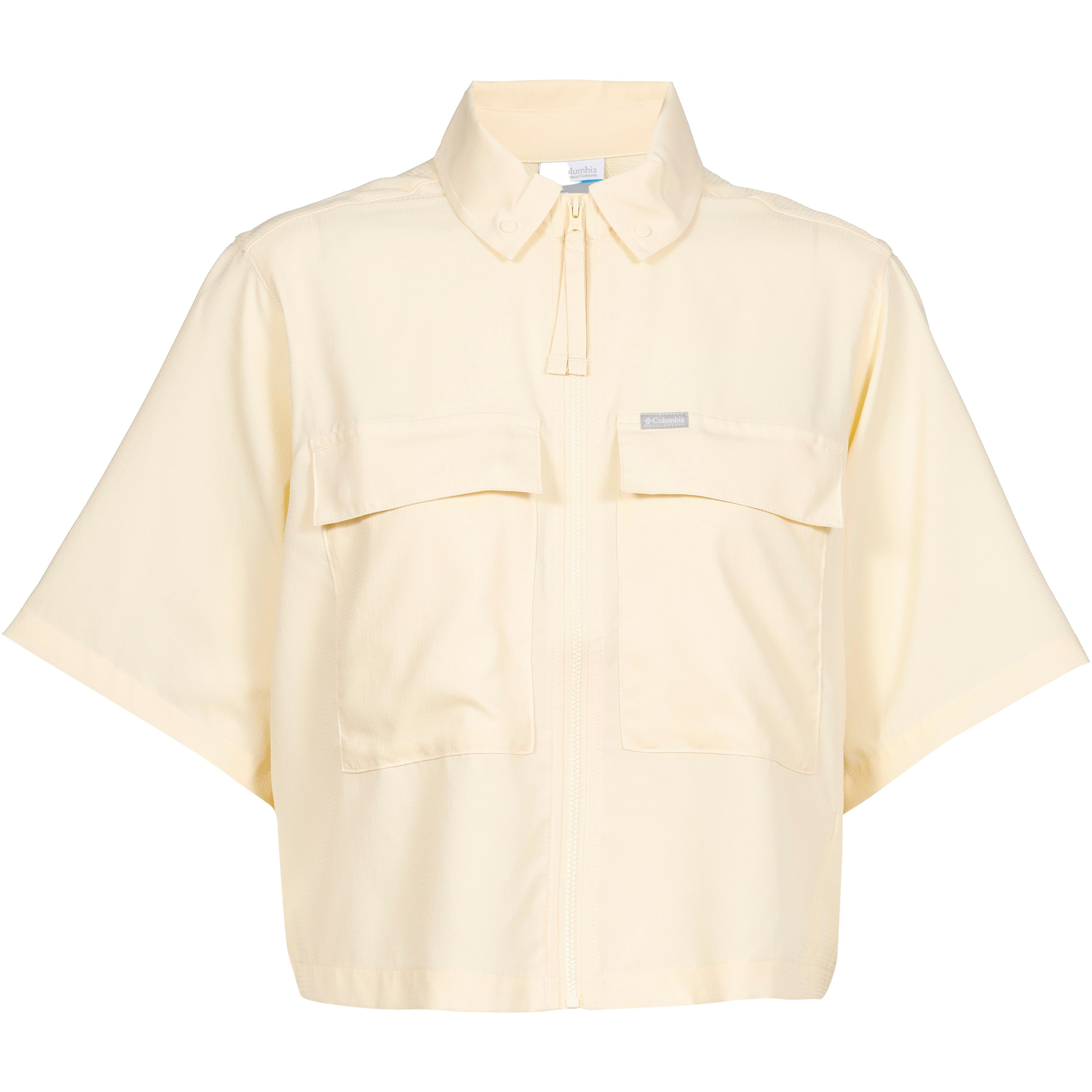 Kurzarmhemd in lässigem Cropped-Design für Outdoor und Lifestyle; dünnes, weiches Material mit optimaler Feuchtigkeitsregulierung durch Omni-Wick™, hält den Körper kühl und trocken; Button-Down-Kragen; durchgehender Reißverschluss mit Zippverlängerung; 2 aufgesetzte Brusttaschen mit Druckknopfverschluss; 1 kleine Mesh-Tasche an der Innenseite; gut belüftete Rückseite mit Meshfutter; weite Passform; mit Recyclingmaterial hergestellt; Material I 100% Polyester (recycelt), Material II 100% Polyester.