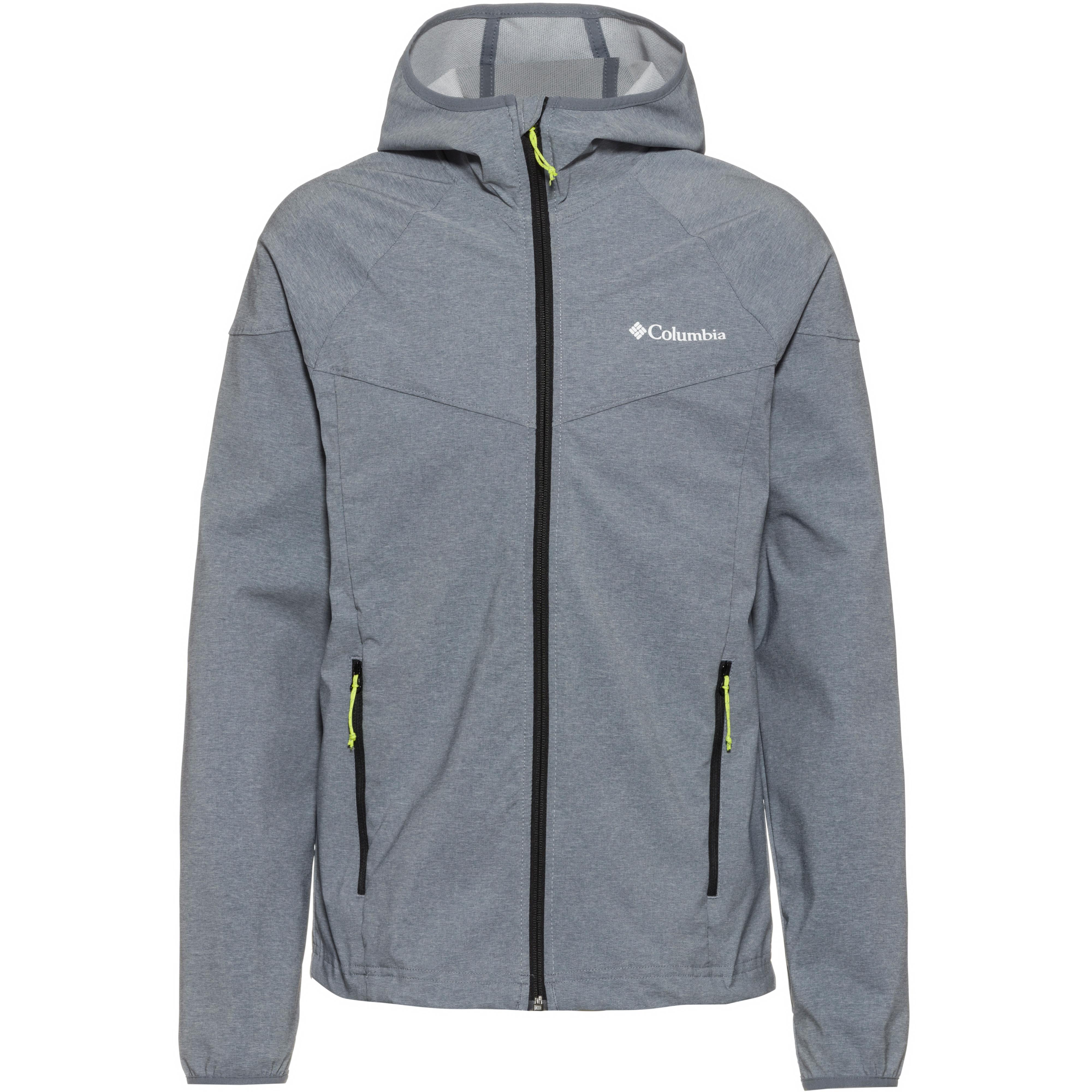 Strapazierfähige und wetterfeste Softshelljacke mit wasserabweisender Imprägnierung; geräumige Kapuze; Kragen mit Kinnschutz; Raglanärmel für optimale Bewegungsfreiheit; unterlegter Frontreißverschluss; 2 Seitentaschen mit Reißverschlüssen; verlängerte Zippbändchen; Markendetail; Stopper im Bund; Material I 93% Polyester, 7% Elastan, Material II 100% Polyester.