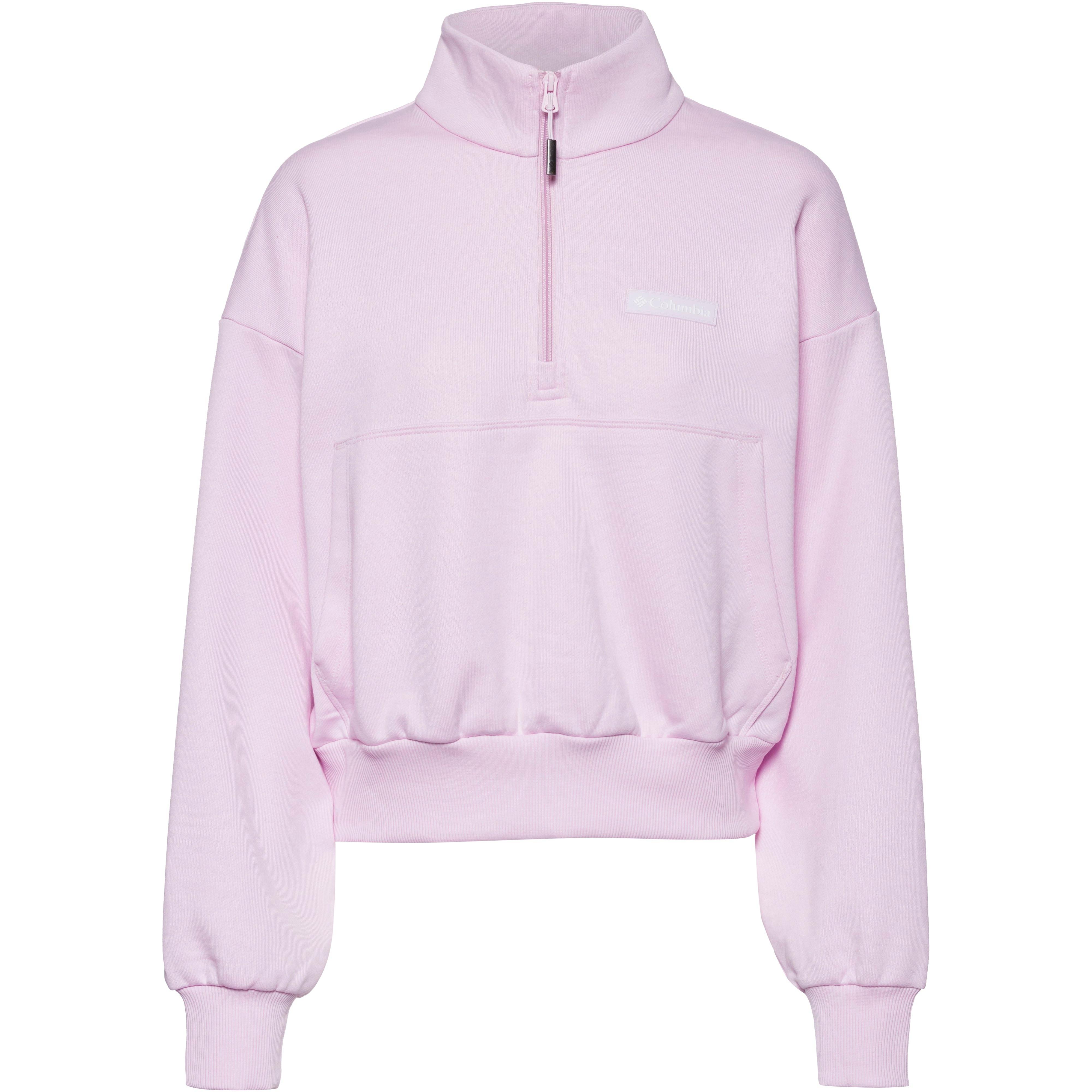 Kürzer geschnittenes Sweatshirt mit Stehkragen und Half-Zip; 2 Seitentaschen; elastische Rippbündchen; Labeldetail auf Brusthöhe; Material 65% Polyester, 35% Baumwolle.
