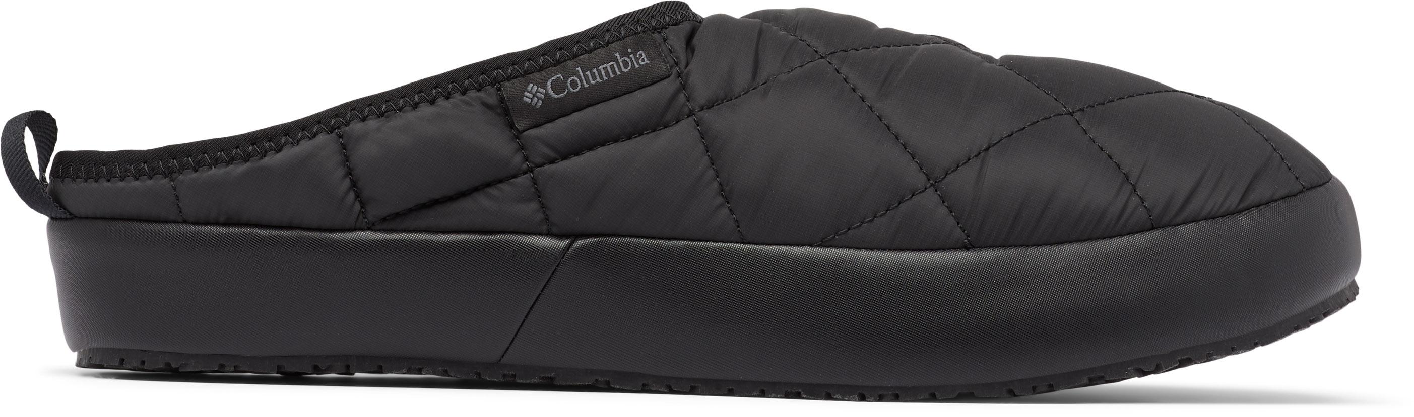 Hausschuhe zum einfachen Hineinschlüpfen; Obermaterial aus Taffeta mit seitlichen Stretch-Einsätzen, passt sich dem Fuß an; umklappbare Ferse mit Zuglasche erleichtert das Anziehen; mit wärmendem OmniHeat™ Futter, welches die eigene Körperwärme reflektiert; atmungsaktiv; Drop-in-Komfort-Einlegesohle; EVA-Fußbett; beflockte Textil-Außensohle; normale Schuhweite.
