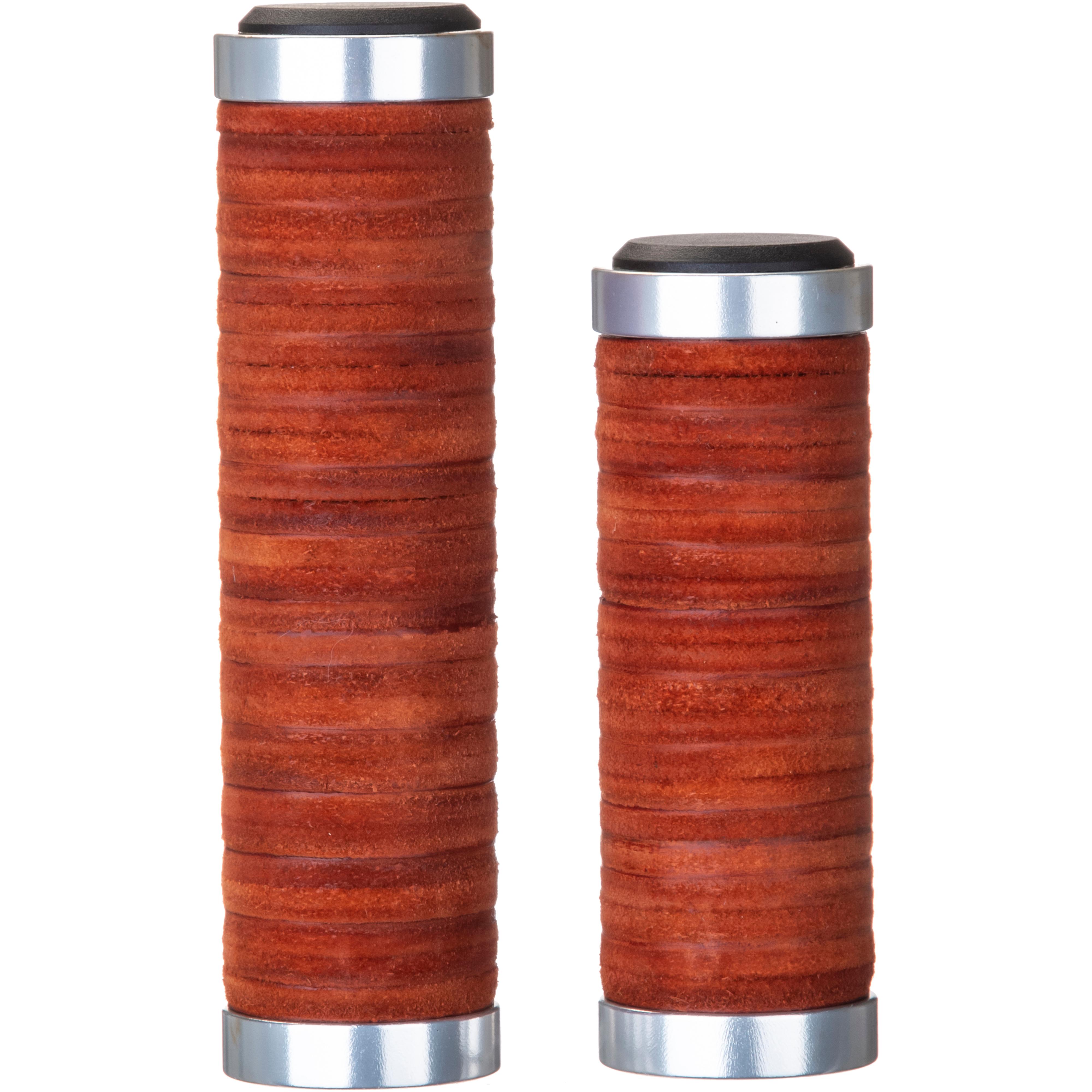 Verschieden lange Lenkergriffe aus Echtleder, mit doppelter Lenkerklemmung; angenehmen Komfort und hohe Atmungsaktivität; Länge: ca. 9,5 und 12 cm.