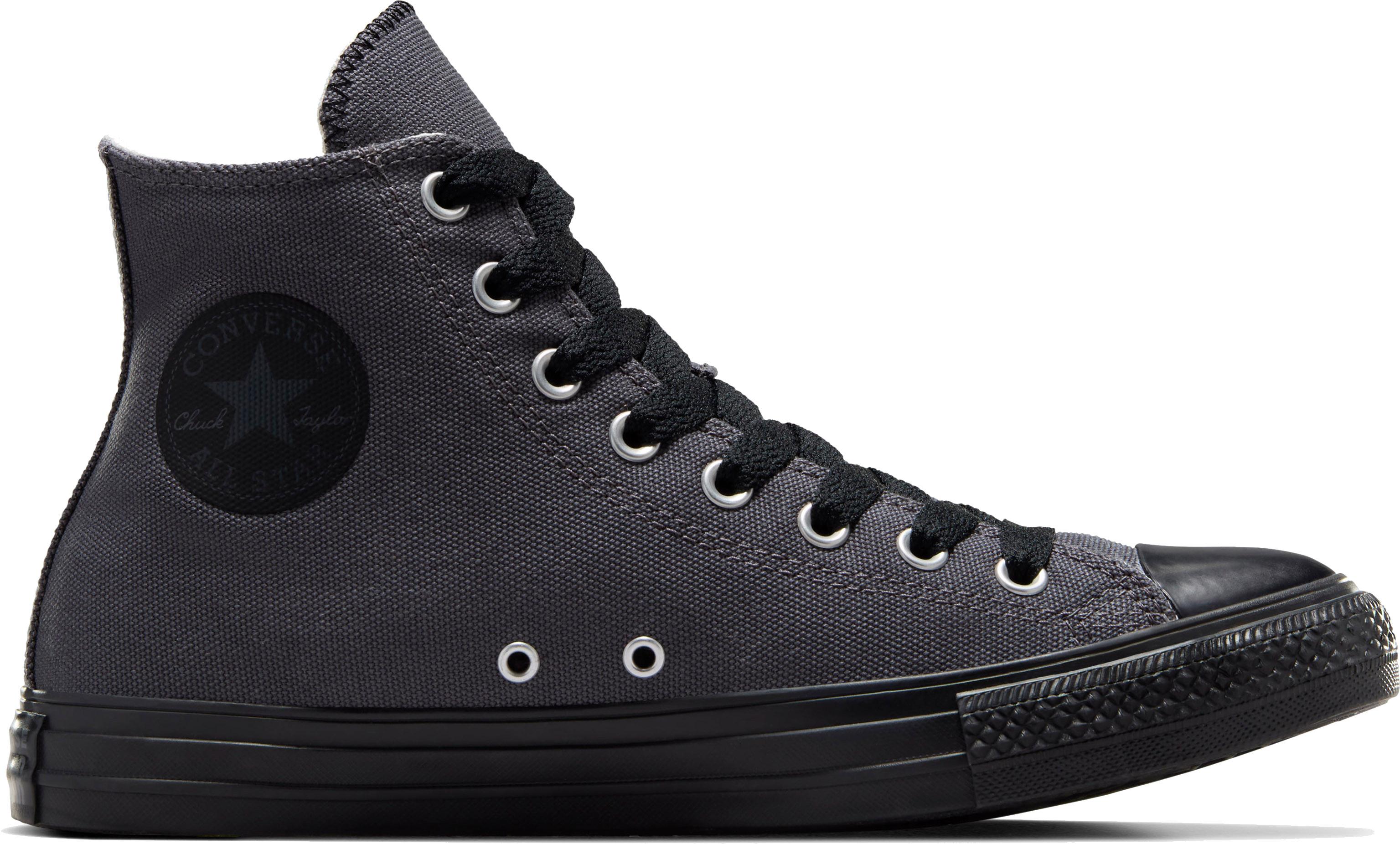 Sneaker mit hohem Schaft in unifarbenem Design; Obermaterial aus robustem Baumwoll-Canvas; Zehenkappe aus Gummi; normale Schnürung; Logopatch; Belüftungsösen; Textilfutter; leicht profilierte Gummi-Außensohle.