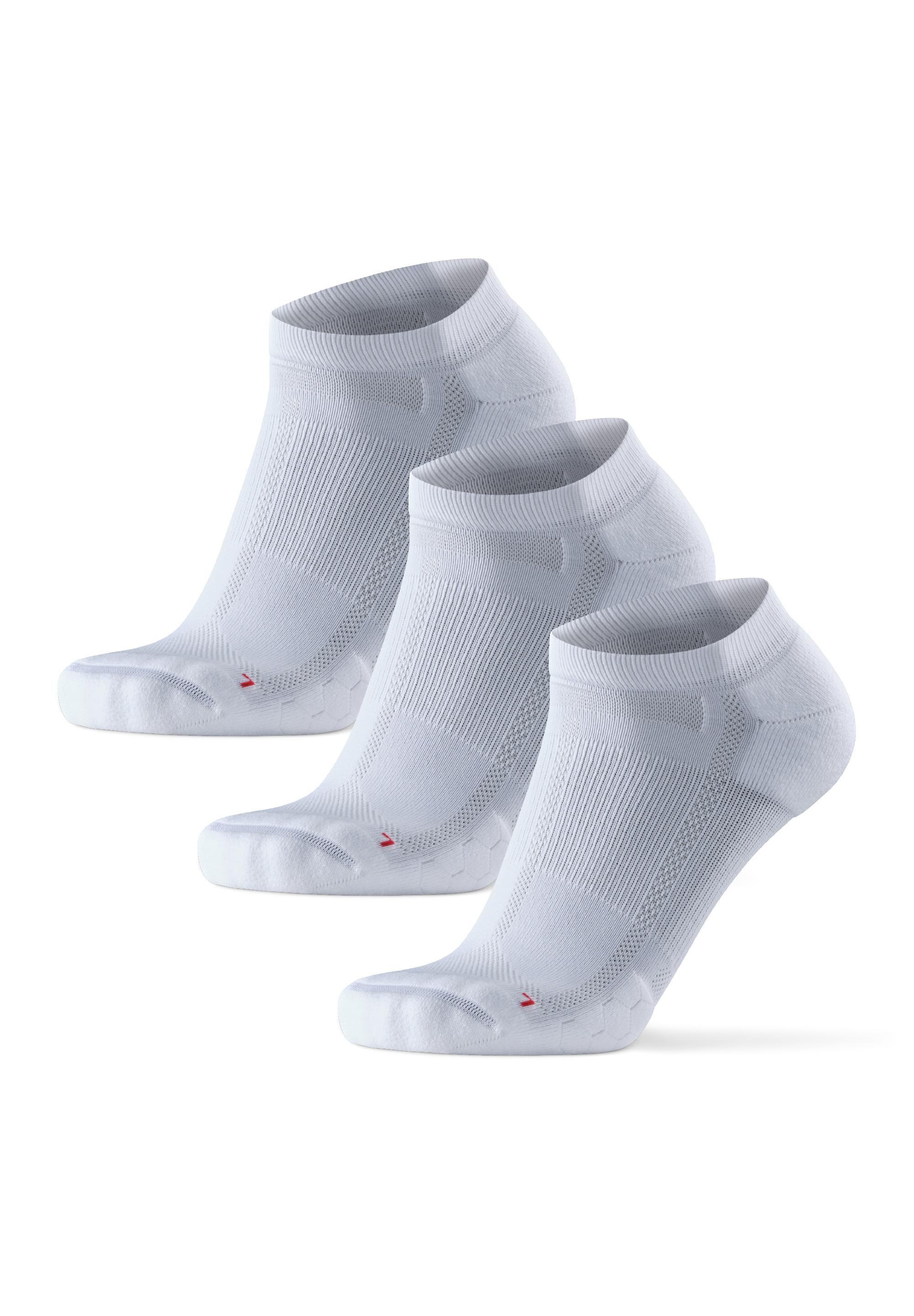 Unsere kurzen, rutschfesten Laufsocken mit Fußgewölbestütze und Polsterung sorgen für weiche, bequeme und blasenfreie Läufe. Atmungsaktive, leichte Materialien und schweißableitende Ventilationsbahnen halten deine Füße frisch und trocken. Diese gepolsterten Sportsocken sind so konzipiert, dass sie Fußermüdung reduzieren und perfekt für lange Distanzen wie Marathons geeignet sind. Auch als Alltagssocken ideal. Mit Ausdauersportlern entwickelt und getestet, garantieren unsere kurzen Socken höchste Qualität und Performance. Pflegehinweise: Vor dem ersten Tragen waschen. Maschinenwäsche bis maximal 40°C. Auf links mit ähnlichen Farben waschen. Nicht bügeln. Nicht trocknergeeignet. Waschmittel ohne Bleichmittel verwenden. Erhältlich in Größen: EU 35-38, EU 39-42, EU 43-46 im 3er- oder 5er-Pack.