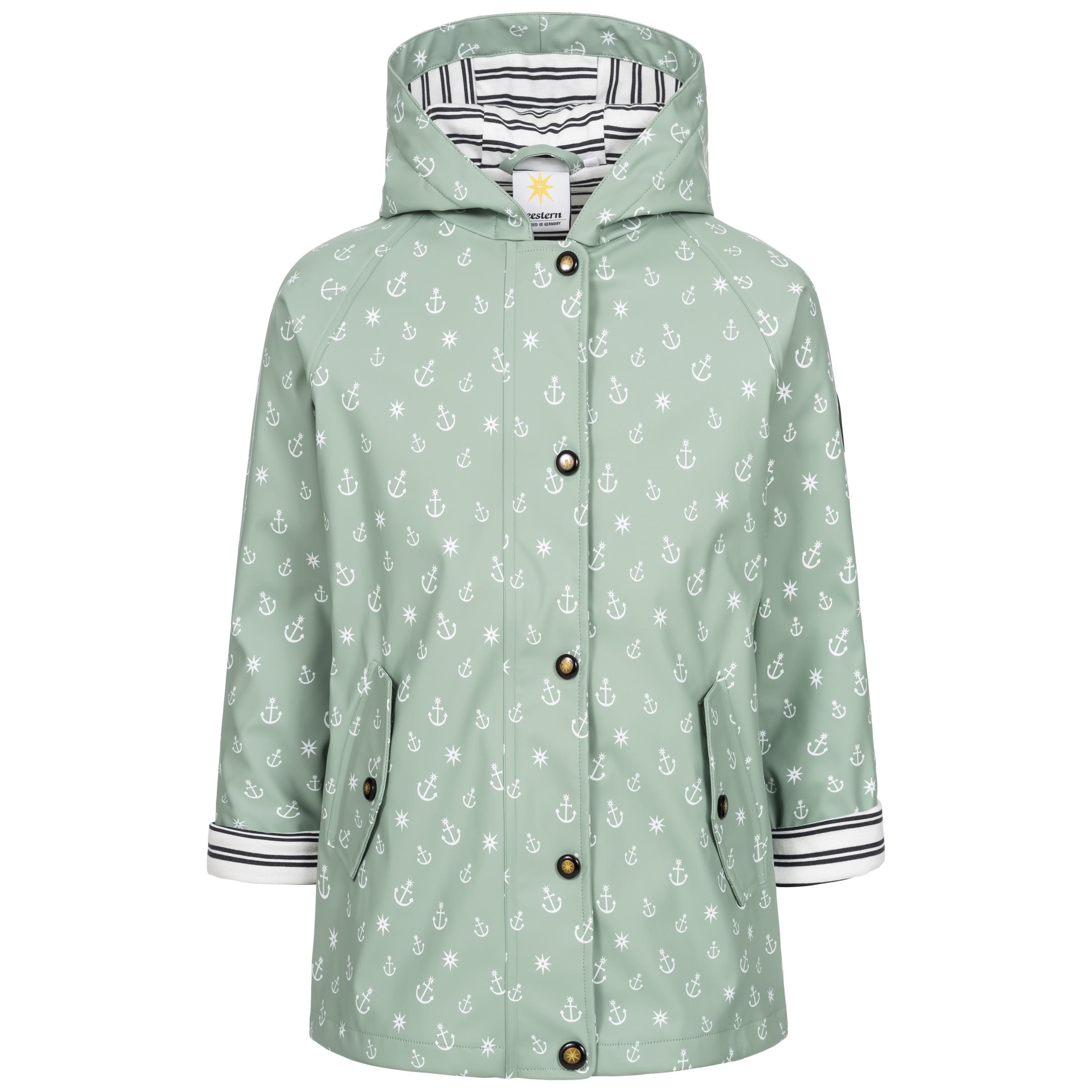 Wolkenvorhang auf für unsere Regenjacke #ankerglutzauber! Nicht nur große, sondern auch kleine Mädchen müssen bestens gerüstet sein, wenn Petrus mal wieder seine Regenvorstellung startet. Die maritime Regenjacke im klassischen Stil eines Friesennerzes sorgt dank ihres hübschen Ankerprints auch an grauen Tagen für gute Laune. Und wenn Mama die gleiche Jacke trägt, dann macht das doppelt so viel Spass. Denn die Regenjacke #ankerglutzauber ist für Erwachsene und Kinder erhältlich. Das wasserdichte Außenmaterial ist an den Nähten verschweißt und bietet verlässlichen Regenschutz. Die Innenseite ist mit einem herrlich soften Jerseyfutter im Streifendesign ausgestattet und sorgt für ein angenehmes Tragegefühl. Taftfutter in den Ärmeln ermöglicht einfaches Hineingleiten in die Jacke, ohne dass Ärmel von Shirt oder Pulli nach oben rutschen. Der untere Teil des Ärmels ist ebenfalls mit dem Streifenfutter versehen, wodurch dieser nach außen umgeschlagen werden kann. Damit lässt sich die Länge des Ärmels bequem regulieren. Der leicht gängige Reißverschluss wird von einer Windschutzblende geschützt. Die beiden äußeren Eingrifftaschen können mit Druckknopf verschlossen werden. Die Weite der niedlichen Mädchenjacke kann mit einem elastischen Kordelzug am unteren Saum reguliert werden. Auch in Sachen Labeldetails steht die Kinderjacke dem Modell für Frauen nicht nach: Ärmelpatch, außergewöhnliche Druckknöpfe und kleine versteckte Botschaften finden sich auch beim Kindermodell wieder.