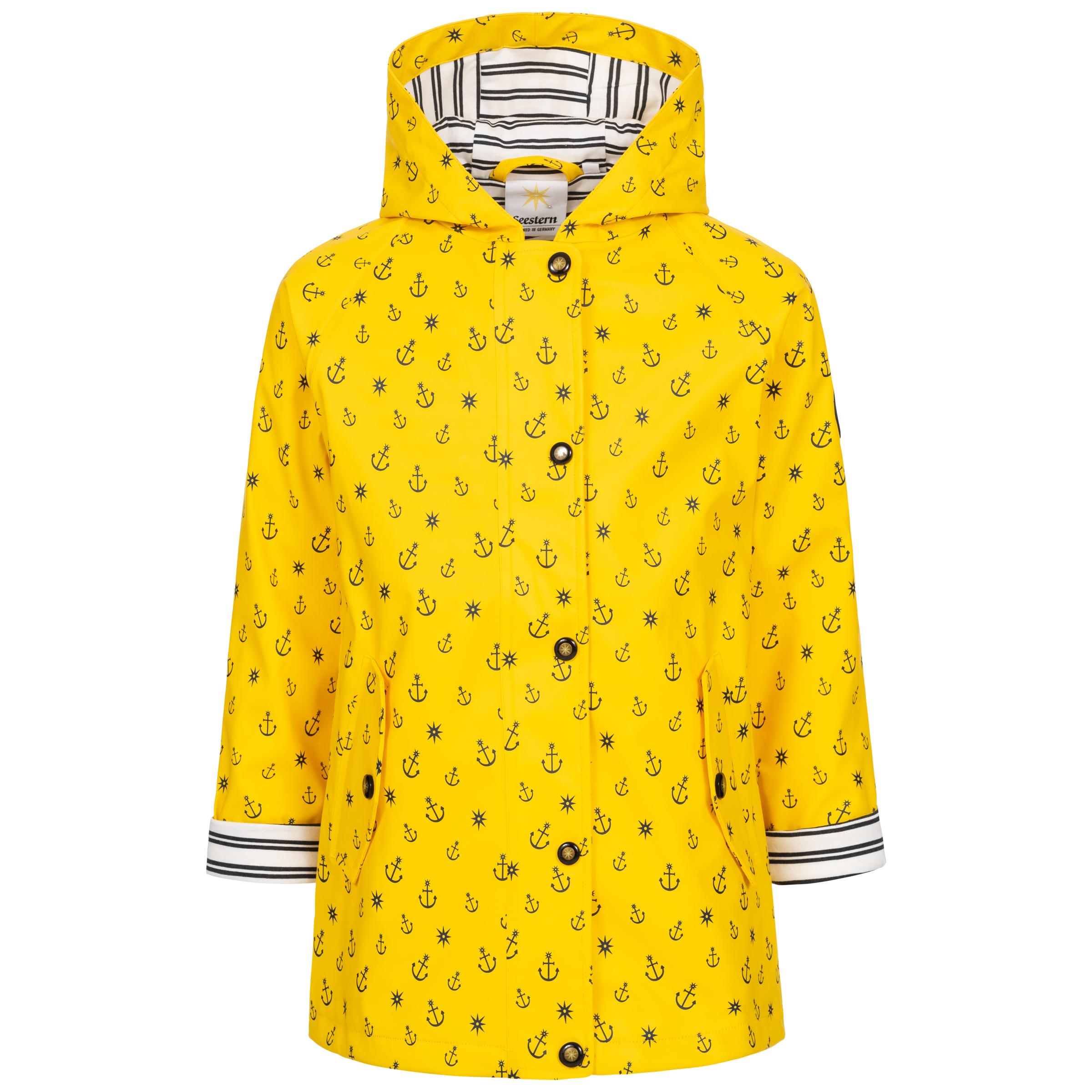 Wolkenvorhang auf für unsere Regenjacke #ankerglutzauber! Nicht nur große, sondern auch kleine Mädchen müssen bestens gerüstet sein, wenn Petrus mal wieder seine Regenvorstellung startet. Die maritime Regenjacke im klassischen Stil eines Friesennerzes sorgt dank ihres hübschen Ankerprints auch an grauen Tagen für gute Laune. Und wenn Mama die gleiche Jacke trägt, dann macht das doppelt so viel Spass. Denn die Regenjacke #ankerglutzauber ist für Erwachsene und Kinder erhältlich. Das wasserdichte Außenmaterial ist an den Nähten verschweißt und bietet verlässlichen Regenschutz. Die Innenseite ist mit einem herrlich soften Jerseyfutter im Streifendesign ausgestattet und sorgt für ein angenehmes Tragegefühl. Taftfutter in den Ärmeln ermöglicht einfaches Hineingleiten in die Jacke, ohne dass Ärmel von Shirt oder Pulli nach oben rutschen. Der untere Teil des Ärmels ist ebenfalls mit dem Streifenfutter versehen, wodurch dieser nach außen umgeschlagen werden kann. Damit lässt sich die Länge des Ärmels bequem regulieren. Der leicht gängige Reißverschluss wird von einer Windschutzblende geschützt. Die beiden äußeren Eingrifftaschen können mit Druckknopf verschlossen werden. Die Weite der niedlichen Mädchenjacke kann mit einem elastischen Kordelzug am unteren Saum reguliert werden. Auch in Sachen Labeldetails steht die Kinderjacke dem Modell für Frauen nicht nach: Ärmelpatch, außergewöhnliche Druckknöpfe und kleine versteckte Botschaften finden sich auch beim Kindermodell wieder.