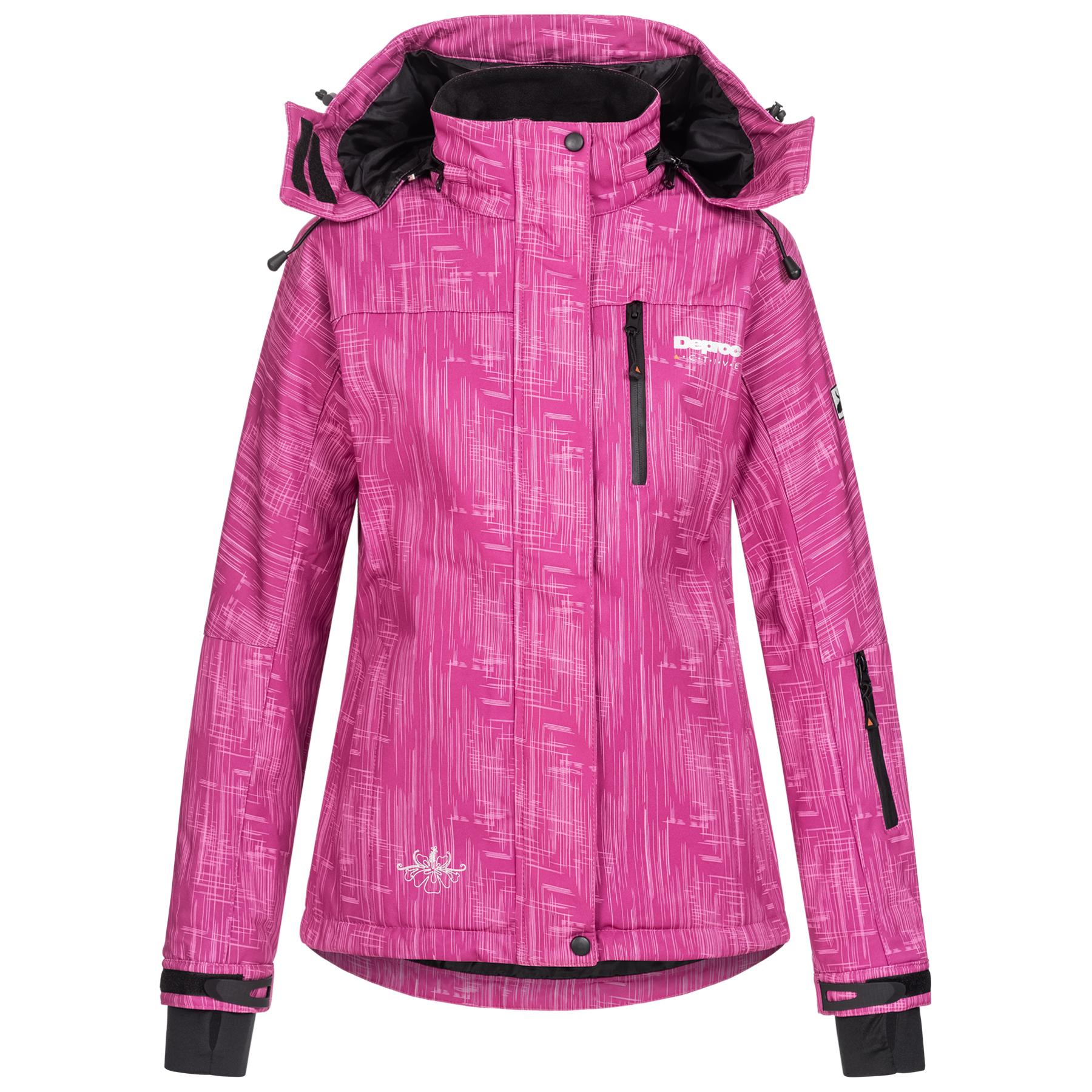 Diese Softshelljacke für Damen ist durch ihren Schneefang und ihrer abnehmbaren Kapuze unverzichtbar für die Piste. Eine Kombination aus Ski- und Freizeit-Softshelljacke. Die Jacke besteht aus 100 % Polyester und ist auch bei Regen wasserabweisend. Auch im Sturm bietet sie einen angenehmen Tragekomfort, da sie winddicht ist. Eine kalte Winterluft kann Ihnen in dieser Winterjacke nichts anhaben. Als besonders komfortable Merkmale lassen sich der abnehmbare Schneefang sowie die wärmende Innenärmelstulpe hervorheben. Die abnehmbare und verstellbare Kapuze ermöglicht je nach Witterung zusätzlich einen Schutz des gesamten Gesichts. Die Ventilationsreißverschlüsse sind einfach zu handhaben und fügen sich in das Jacken-Design als dezente Applikation ein. Der elastische Kordelzug am Bund ermöglicht eine einfache und effiziente Anpassung je nach individuellem Bedürfnis. Auch bei langen Aufenthalten erweist sich die Jacke als besonders atmungsaktiv. Die Softshell-Jacke stellt eine Mischung aus Ski- und Freizeitjacke dar. Die Jacke verfügt über insgesamt vier Außentaschen sowie zwei Innentaschen und , besonders wichtig, eine Skipasstasche. Somit verfügt die Jacke über ausreichend Stauraum. Mit ihren nur 1080 Gramm ist die Winterjacke zudem angenehm zu tragen, ohne beschwerend zu wirken. Die Jacke ist besonders bei Schnee ein wahrer Hingucker auf der Piste.