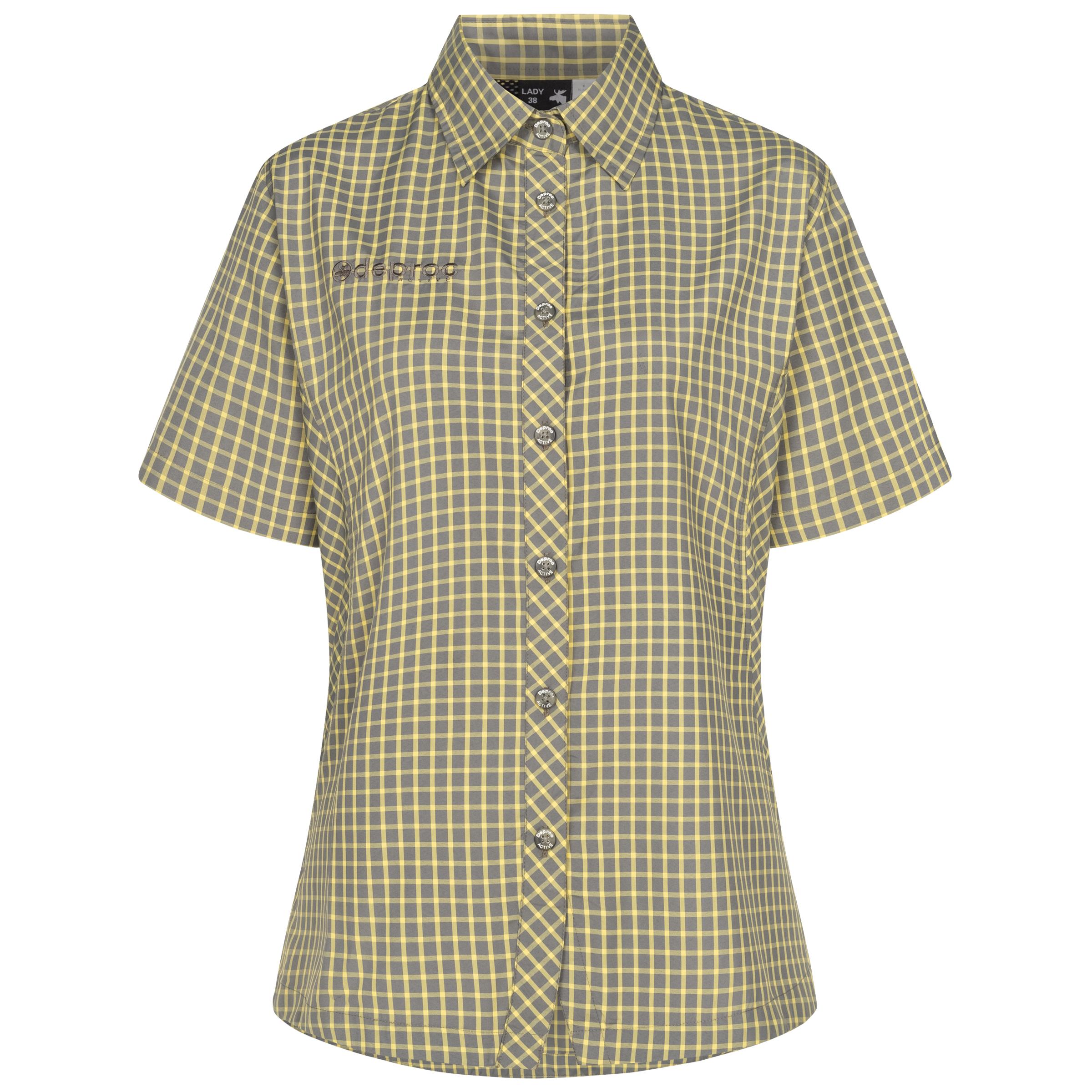 Leichte, hochfunktionale Damenkurzarmbluse für alle Outdooraktivitäten mit UV-Schutz 30+ und ist atmungsaktiv und schnelltrocknend. Die Polyesterfasern sind besonders licht- und wetterbeständige Fasern, sodass sie hohen Widerstand gegen klimatische Einflüsse zeigen. Darüber hinaus sind sie sehr fein und leicht und bieten in Verbindung mit Lycra einen hohen Tragekomfort sowie eine gute Passform und Formbeständigkeit. Das Material ist sehr pflegeleicht und trocknet recht schnell. So ist es nach einem kurzen Sommerregen schnell wieder trocken. Ein Belüftungsschlitz im oberen Rückenbereich und Seitenschlitze im Saum der attraktiven Damenbluse von Deproc sorgen für angenehme Trageeigenschaften sowie für eine hohe Bewegungsfreiheit bei verschiedenen Outdooraktivitäten. Ein Logostick im Vorderteil und auf einem Ärmel rundet das funktionelle und modisch-sportliche Design der Kurzarmbluse ab. Die Kurzarm-Damenbluse vom Outdoorspezialisten Deproc ist leicht tailliert geschnitten und verfügt über eine sportliche Passform. Die Bluse mit kurzen Ärmeln ist in erster Linie für den Outdoor-Einsatz bestimmt, macht aber auch im Alltag und in der Stadt aufgrund des klassischen Schnitts eine gute Figur. Der Stoff besteht aus 100 % pflegeleichtem Polyester. Die Funktionsbluse ist knitterfrei und trocknet nach der Wäsche ganz schnell in ein paar Stunden. Der Stoff ist dünn und leicht. Er fällt locker und lässt die Luft zirkulieren. Für optimale Belüftung sorgt ein Schlitz auf der Rückseite im Schulterbereich. Der Belüftungsschlitz wird mit einer Stoffleiste abgedeckt. Die Bluse verfügt über hervorragende Materialeigenschaften für sportliche Aktivitäten. Sie wird gerne zum Wandern, Joggen, Radfahren, Skaten und vielen weiteren Outdooraktivitäten getragen. Bei intensiver Sonneneinstrahlung schützt die Funktionsbluse die empfindliche Schulterpartie. Nach einem kräftigen Regenschauer trocknet die Bluse sehr schnell wieder, weil der Stoff aus Polyester kein Wasser aufsaugt. Die Bluse kann über oder in der Hose getragen werden. Das Logo des Herstellers Deproc ist dezent über den Saum der Vorderseite und auf den Nackenbereich gestickt. Die Funktionsbluse ist für optimalen Komfort mit funktionalen leichten Trekkinghosen von Deproc kombinierbar. Mit rundum luftig leichter Bekleidung lässt sich der Sommer so richtig genießen!