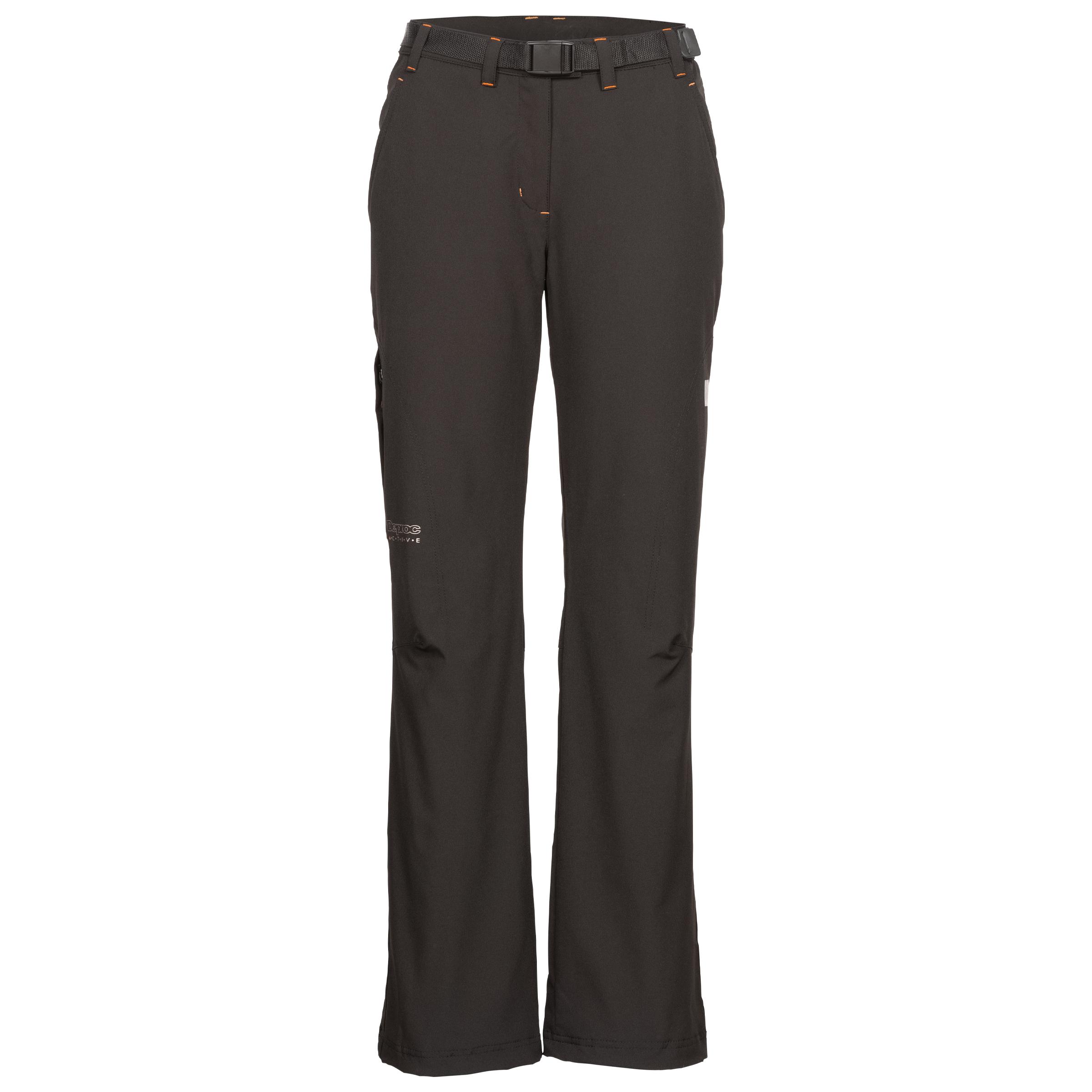 Outdoorvergnügen auch in der kalten Jahreszeit, garantiert diese gefütterte DamenThermohose aus elastischem Material. Wohlig wärmend und modisch schick ist die Outdoorhose Brandon vom Outdoorspezialisten Deproc. Für Frauen mit etwas stärkerer Statur bietet sie ganz besonderen Tragekomfort und lässt die Figur schlanker erscheinen. Die atmungsaktive Thermohose ist sportlich gerade geschnitten und besticht mit funktionalen Details. Eine XXL-Hose zum Wohlfühlen! Im Hosenbund ist ein elastischer Einsatz integriert, sodass sich der Stoff jederzeit an den Körper anpasst. Für perfekte stufenlose Weitenregulierung sorgt ein lässiger Webgürtel. Das Gewebe ist ein Nylon-Elastan-Gemisch. Elastan ist elastisch und macht den Stoff dehnbar. In Kombination mit Nylon entsteht eine abriebfeste Oberfläche, die weitestgehend unempfindlich gegenüber Verschmutzungen ist. Nach dem Waschen trocknet die Hose schon in wenigen Stunden und muss nicht gebügelt werden. Der Stoff knittert nicht, auch wenn die Hose auf Reisen in den Koffer gepackt wird. In jeder Hinsicht pflegeleicht, praktisch und bequem ist sie die ideale Ausrüstung für Outdoortouren. Ebenso macht die Hose in der Stadt eine gute Figur. Sie lässt sich hervorragend zu vielen Oberteilen kombinieren. Der glatte Stoff wirkt trotz bester Materialeigenschaften für den Outdoorbereich nicht rustikal, sondern vielmehr sportlich elegant. Die Thermohose von Deproc ist mit wunderbar wärmendem Micro-Technofleece gefüttert. Es besteht aus 100% Polyester und lässt sich angenehm auf der Haut tragen. Da die Hose atmungsaktiv ist, schwitzt der Körper nicht. So sind Wanderungen ein wahres Vergnügen! Vier nützliche Taschen vervollkommnen die Thermohose für Damen. Sie hat zwei seitliche Einschubtaschen, eine Reißverschluss-Seitentasche und zusätzlich eine Reißverschluss-Gesäßtasche.