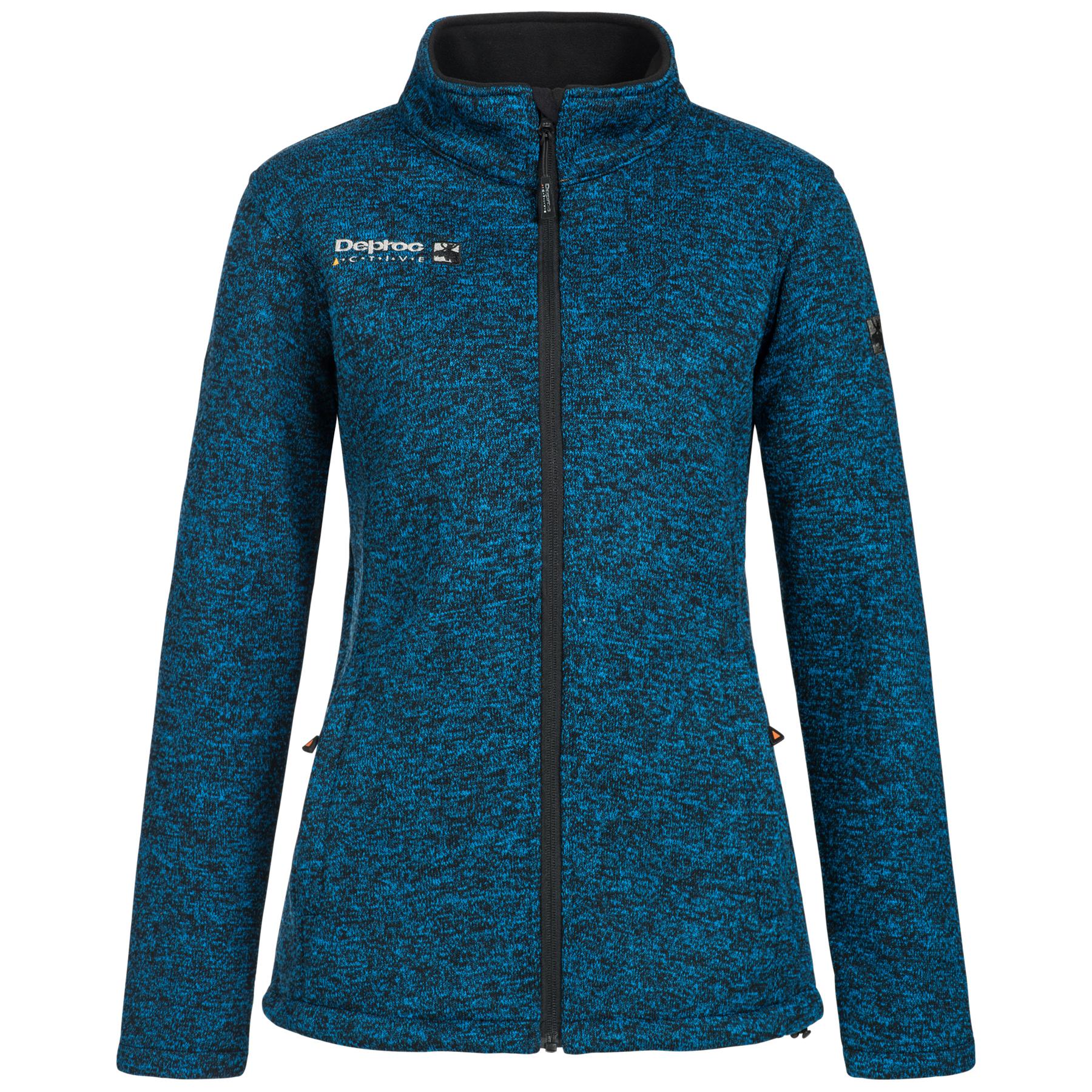 Diese Fleecejacke in Strickoptik besticht mit ihrer sportlich schnittigen Passform. Leicht tailliert und dennoch bequem geschnitten bietet sie maximalen Tragekomfort. Die Strickfleece Jacke ist strapazierfähig und pflegeleicht. Sie ist optimal sowohl für die Übergangszeit in Frühjahr und Herbst als auch als einzippbare Innenjacke für wetterfeste Outdoorjacken. Das Fleece ist hochwertig und besteht aus 96 % Polyester und 4% Elasthan. Der Elasthananteil macht die Strickfleecejacke wunderbar dehnbar und angenehm zu tragen. Wenn sie einmal im Regen nass geworden ist, so trocknet sie innerhalb kürzester Zeit. Damit ist sie auch ein idealer Begleiter für Urlaubsreisen. Die Farbtöne sind alle meliert, sodass die Gewebeoberfläche optisch ansprechend und zugleich unempfindlich ist. Die hochwertige Verarbeitung der Strickfleece Jacke ELKFORD LADYl ässt keine Wünsche offen. Die Jacke ist mit zwei seitlichen Taschen ausgestattet, die mit Reißverschlüssen bedient werden können. Die schwarzen Reißverschlüsse heben sich akzentuiert von der farbigen Strickoptik ab. Das Deproc Logo ist dezent auf die rechte Brustseite gestickt. Der hoch geschnittene Kragen schützt vor kaltem Wind und ist auf der Innenseite mit wärmendem Microfleece gepolstert. Wer nicht nur eine Übergangsjacke sucht, sondern auch eine warme Winterjacke braucht, trifft mit der Strickfleecejacke Elkford eine gute Wahl. So lässt sich optimaler Kälteschutz mit einer flauschig warmen Wohlfühljacke verbinden.