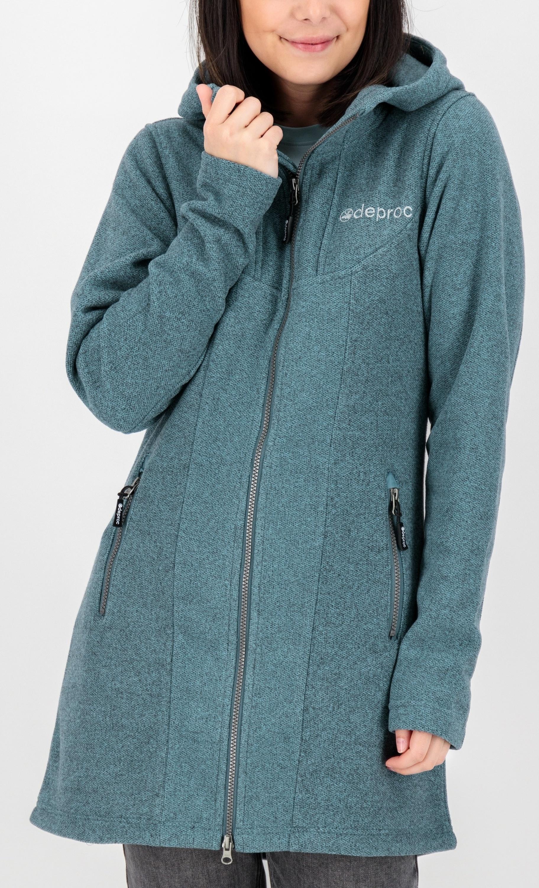 Der dicht gestrickte Fleecemantel GLORY APRIL von DEPROC active ist auf der Innenseite mit einem weichen und wärmenden Fleece ausgestattet. Optisch überzeugt der Mantel mit seinem modisch unkomplizierten und toll kombinierbaren Design. Das Strickfleece-Material in hübscher Melange-Optik spendet wohlige Wärme an kühlen Tagen. Gleichzeitig ist es atmungsaktiv und trocknet im Handumdrehen. 2 Reißverschlusstaschen bieten ausreichend Platz und halten die Hände schön warm. Der modische Strickfleecemantel mit praktischem 2-Wege-Reißverschluss ist in tollen Farben erhältlich.