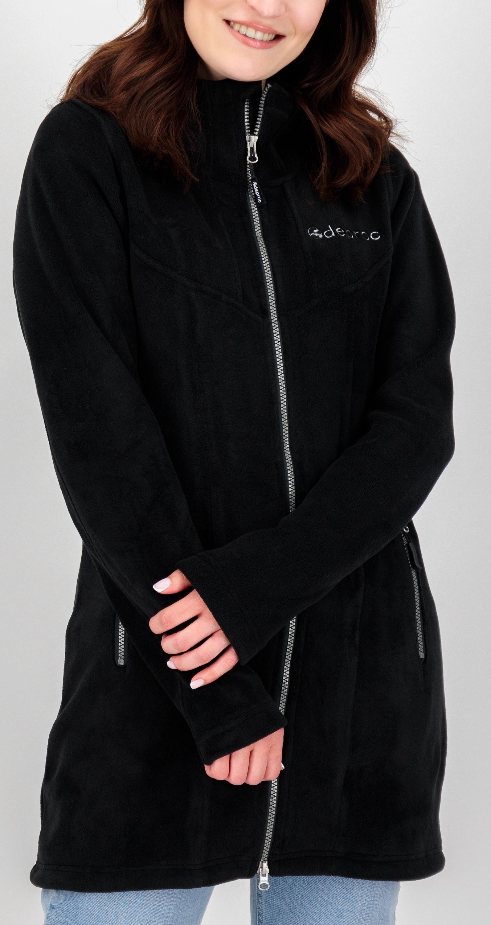 Der Fleecemantel WAWA PEAK von Deproc active hält von Kopf bis Oberschenkel herrlich warm. Der hohe Kragen spendet in Kombination mit der Kapuze zusätzliche Wärme. Die Innenseite ist weich aufgebürstet und sorgt so für ein angenehmes und kuscheliges Tragegefühl. Der leicht taillierte Schnitt unterstreicht die edle, feminine Optik, ohne dabei Bewegungen einzuschränken. Dank des 2-Wege-Frontreißverschlusses ist auch Radfahren mit unserem Fleecemantel WAWA PEAK kein Problem.