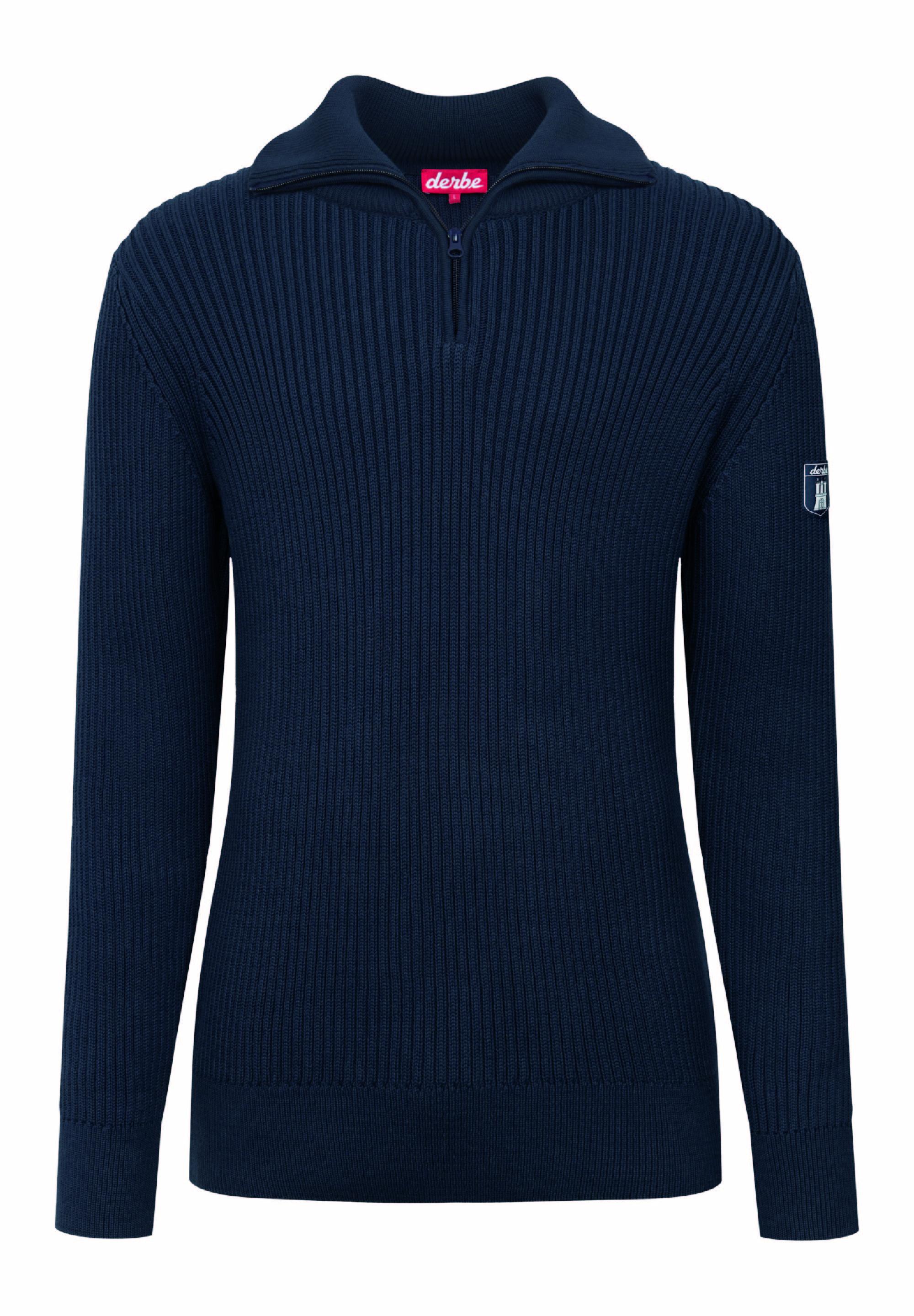 Unifarbener Basic Strick Troyer von derbe. Der Stehkragen inkl. Zipper verleihen ihm seine Hochwertigkeit. Das Baumwollmaterial verleiht ihm ein besonders angenehmes Tragegefühl. Wähle deine gewohnte Größe.
