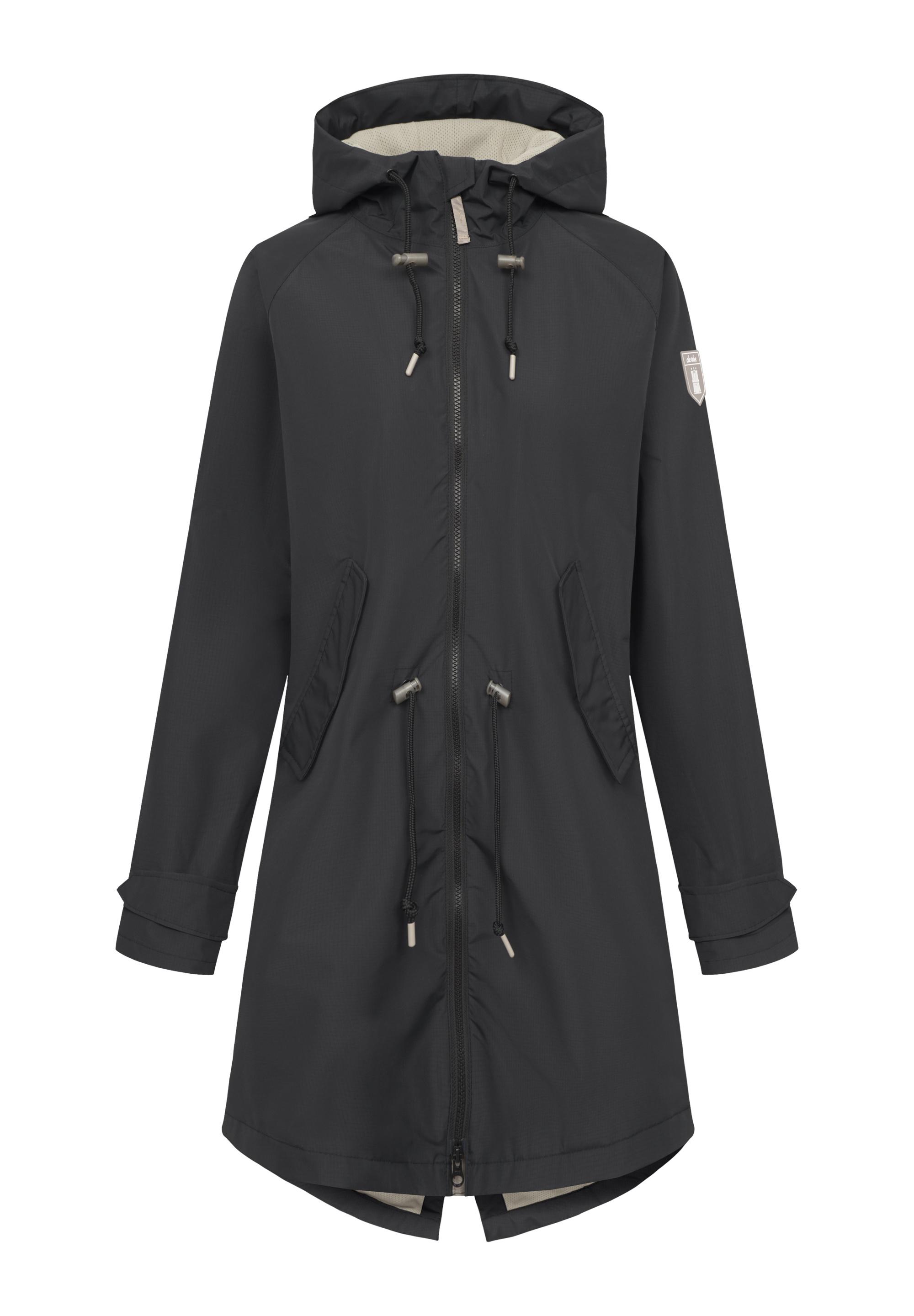Modische Derbe-Regenjacke mit 2-Wege-Reißverschluss, semitransparentem Stopper und praktischer Innentasche – stylisch und funktional zugleich.Die wasserdichte Jacke besticht durch qualitative Materialien und einen hohen Tragekomfort. Wähle deine gewohnte Größe.