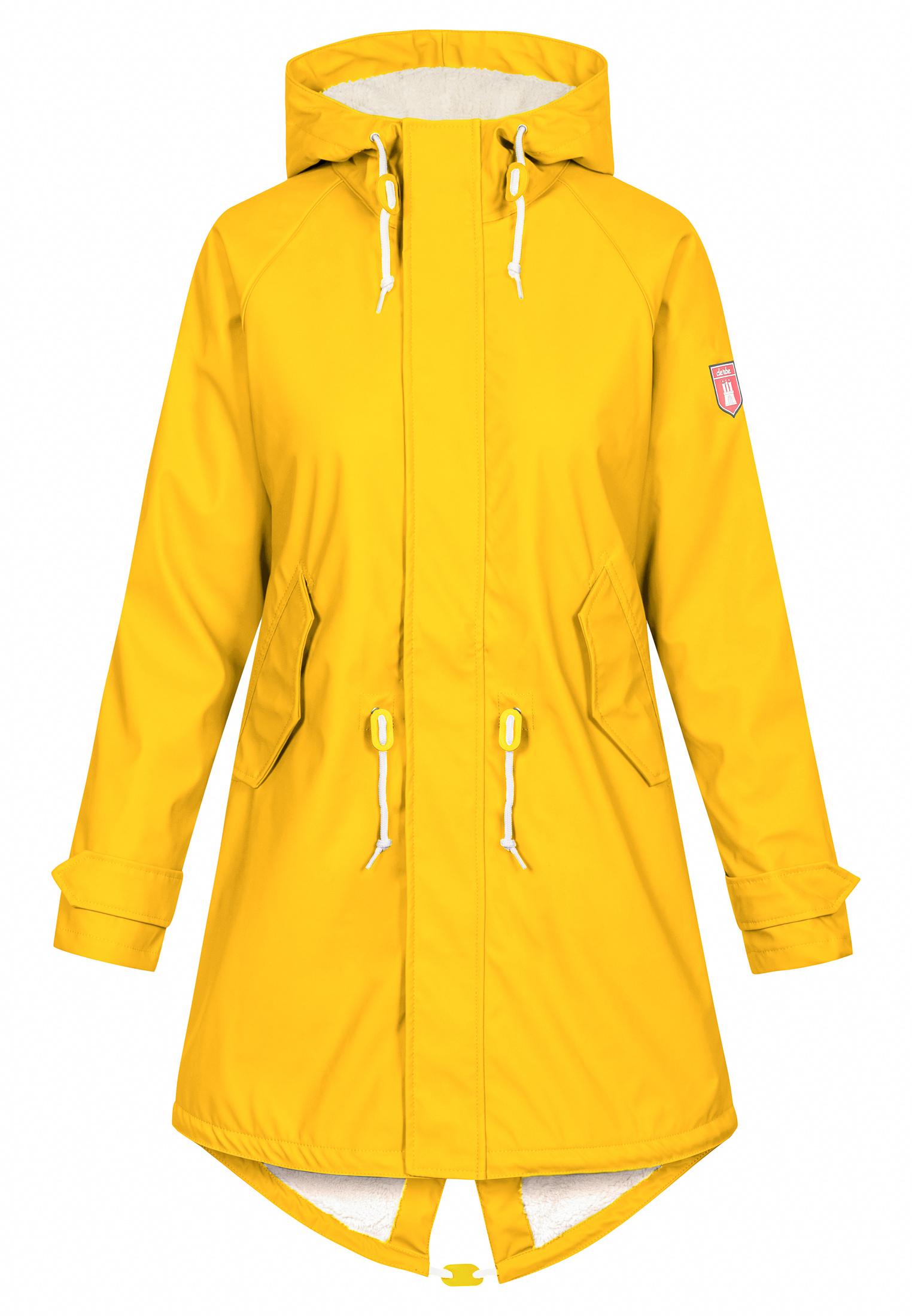 Die Regenjacke von derbe kommt im femininen Style daher und steht der Trägerin bei Wind und Wetter zuverlässig zur Seite. Das Design, die Schnittführung und der Einsatz Materialien machen diese Jacke zu einem neuen Lieblingsartikel von derbe. Ein besonderes Highlight sind die goldenen Details an diesem Modell. Fällt groß aus, bitte eine Größe kleiner bestellen.