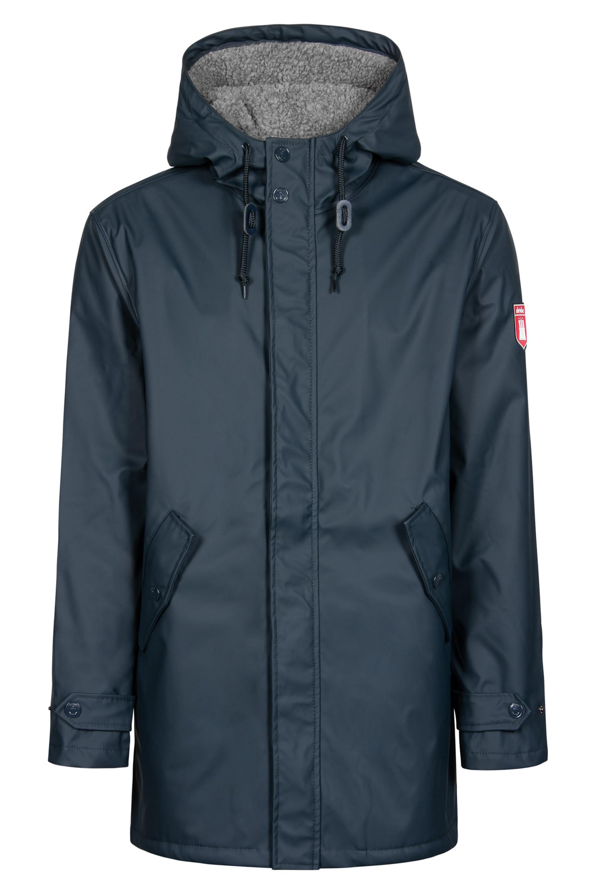 Der gefütterte Friesennerz Klassiker für den Mann. Das wasserdichte Material schützt dicht in Verbindung mit dem Teddyfell-Lining vor Regen & Kälte. Vegan & wetterfest. Wähle deine gewohnte Größe.