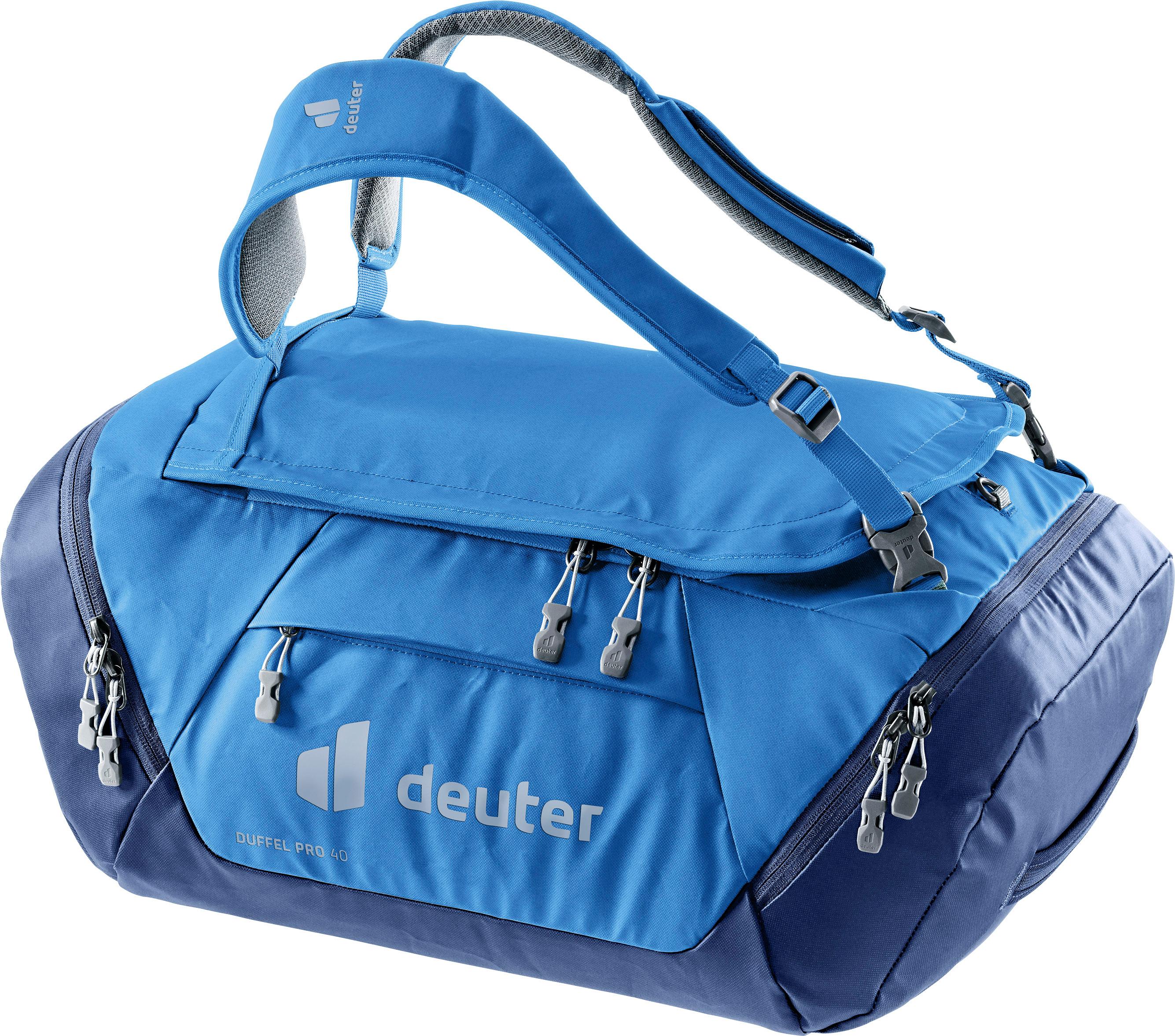 Reisetasche aus robustem, wasserabweisendem Polyester-Hauptmaterial mit TPU-Beschichtung; kann in der Hand oder als Rucksack getragen werden; mit verstaubaren Schulterträgern, welche als Tragegriff kombiniert werden können; abschließbares Hauptfach mit Netzinnentasche; 2 Seitentaschen und ein Frontfach; Kompressionsriemen innen zur Fixierung der Kleidung; die Tasche kann klein zusammengefaltet und verstaut werden; Gewicht: ca. 1.200 g; Volumen: 40 l; Maße (H/B/T): ca. 22 x 5 x 35 cm; Zuladungsempfehlung: 4-8 kg; Hauptmaterial zu 50% recycelt; ohne PFAS hergestellt; bluesign® Produkt; zertifiziert durch Grüner Knopf und ClimatePartner.